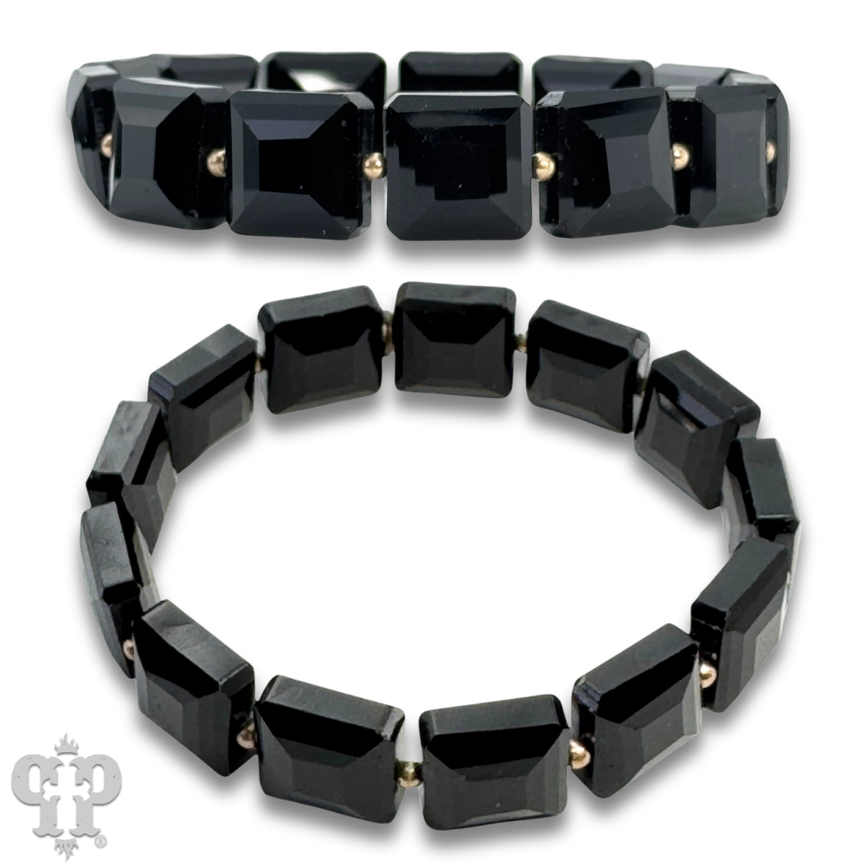 This beaded bracelet boasts shimmering square beads that stretch for effortless wear.