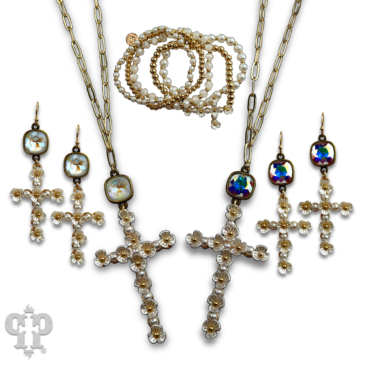 - Pearlized flower cross charm