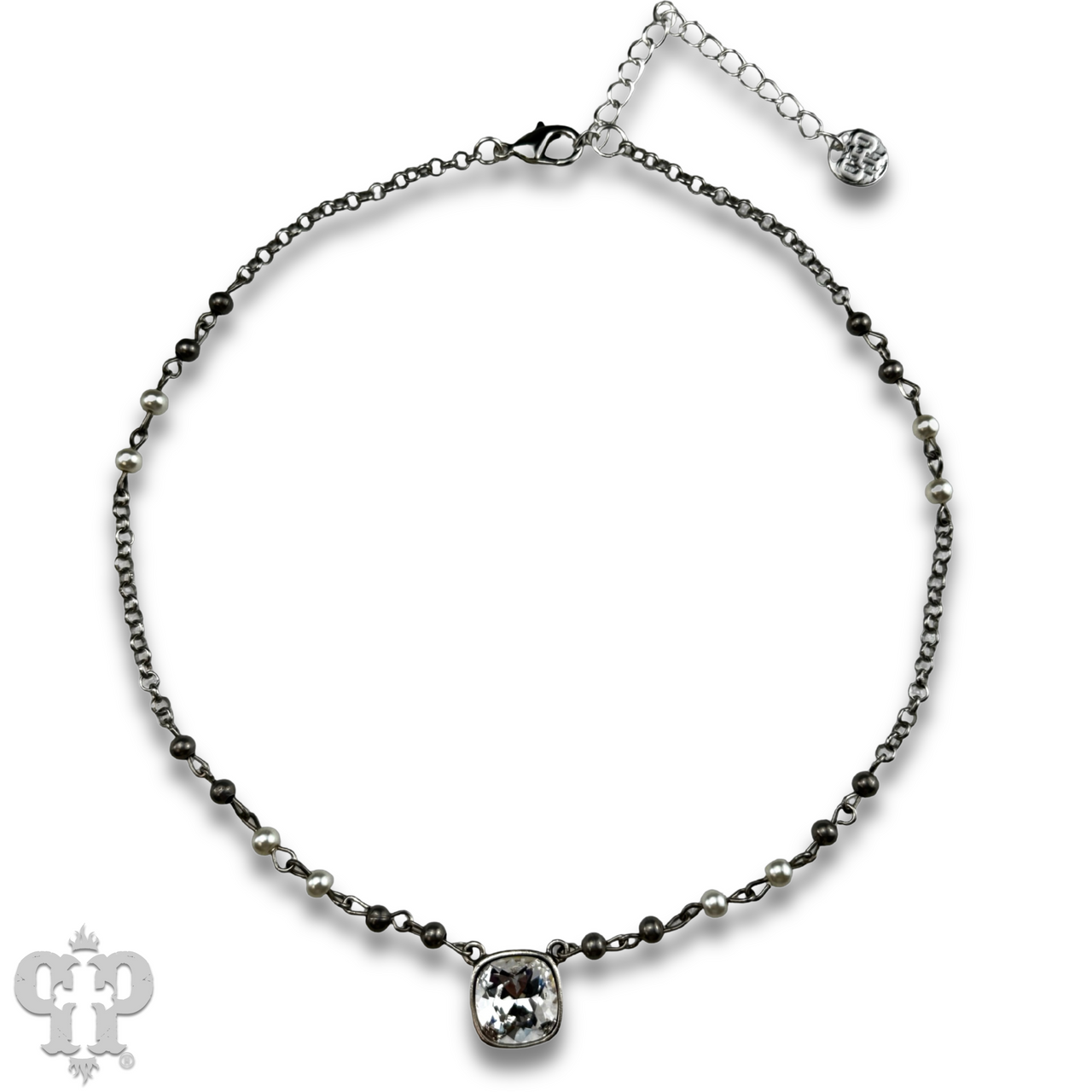 This linked bead necklace features a sparkling 12mm Austrian crystal drop. The drop setting is custom made for Pink Panache in the USA.