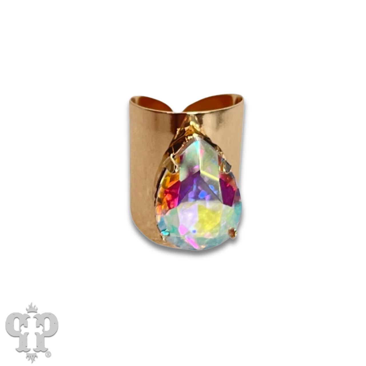 This base for a ring is adjustable and boasts a sparkling rhinestone teardrop stone.