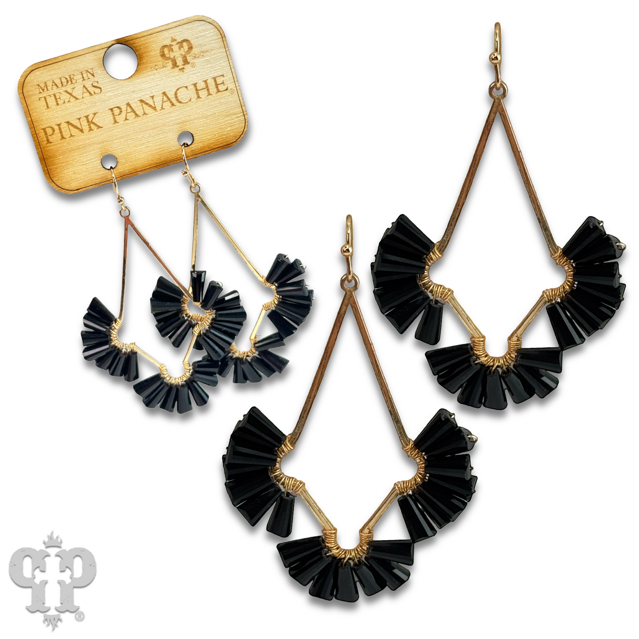 These unusual teardrop earrings have a group of fluted beads along the bottom.