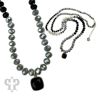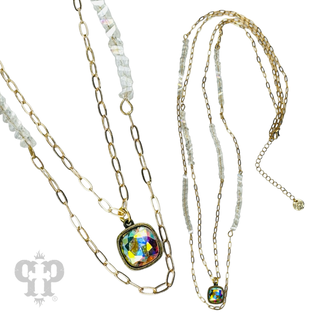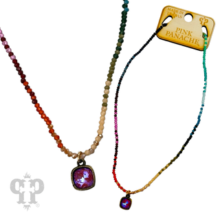 Long paperclip chain and bead necklace with Austrian crystal pendant