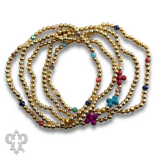 Faceted glass and gold tone bead bracelet