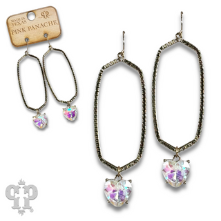 Hexagon shape earring with rhinestone heart charm