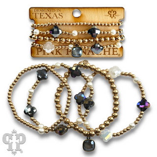 Three strand bracelet stack with screw lock charm and Austrian crystal