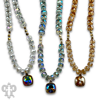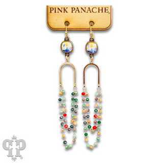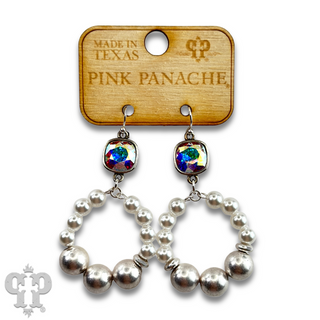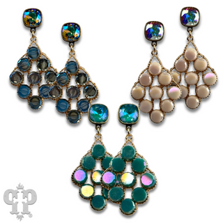 Square iridescent finish bead teardrop earring with Austrian crystal
