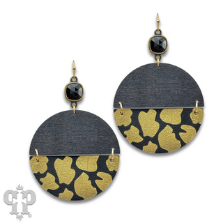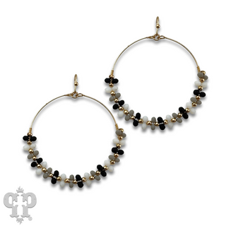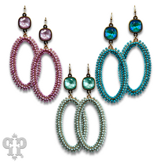 Twisted gold tone circle and seed bead earring with Austrian crystal