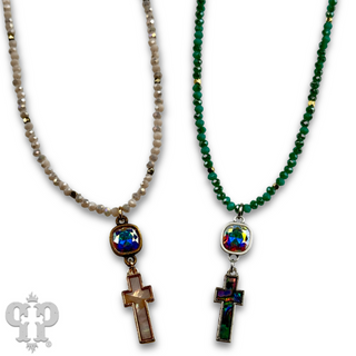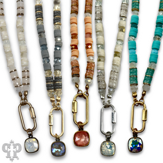 Cylinder stone linked bead with toggle closure and Austrian crystal necklace