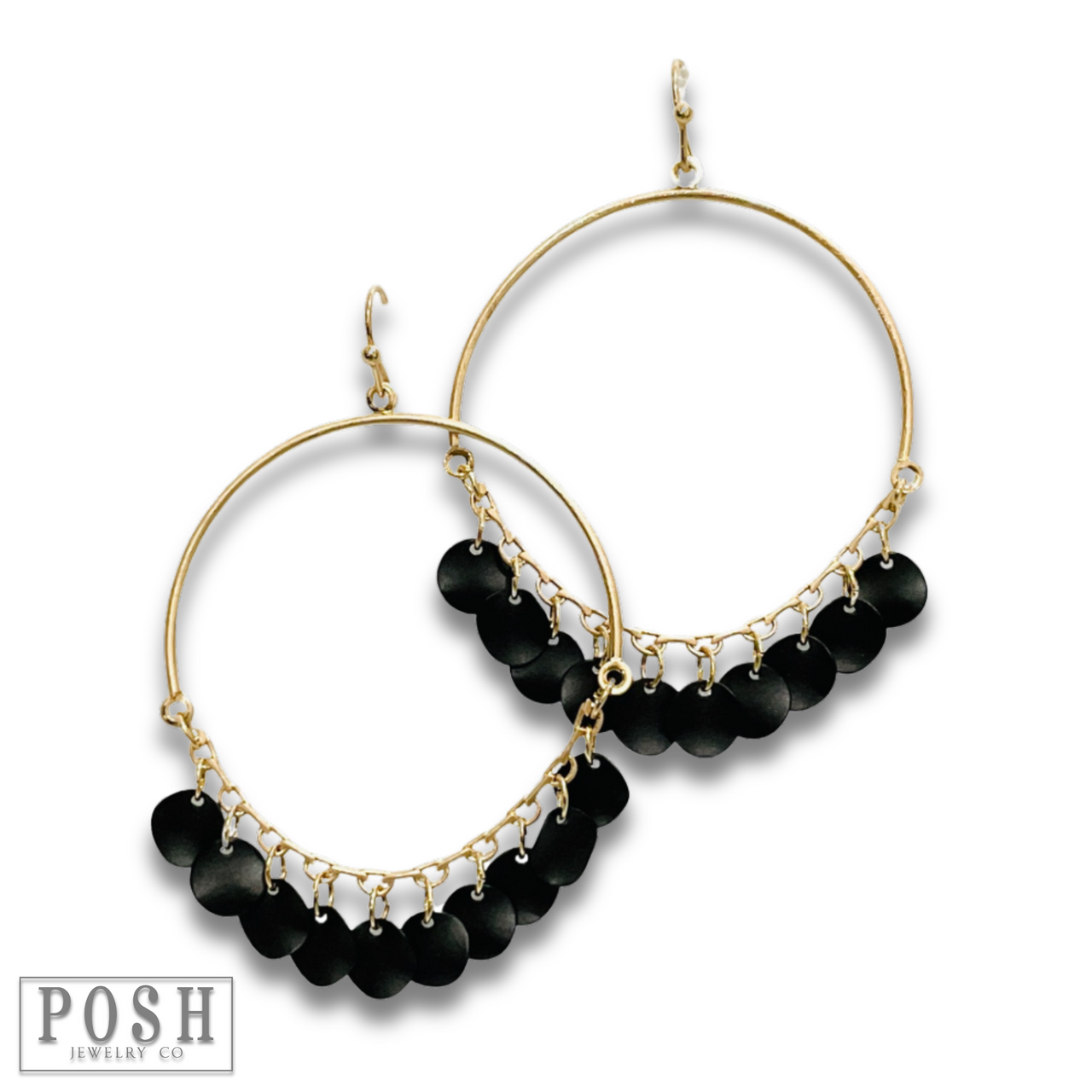 Add some extra pizazz to your outfit with these shiny disc charms hanging from a golden circle and chain earring!