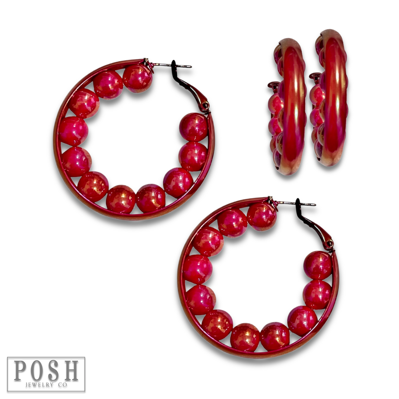 Turn heads with these hoops! Catch the light with their iridescent finish and playful beads inside.