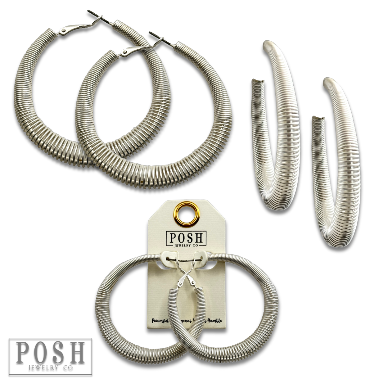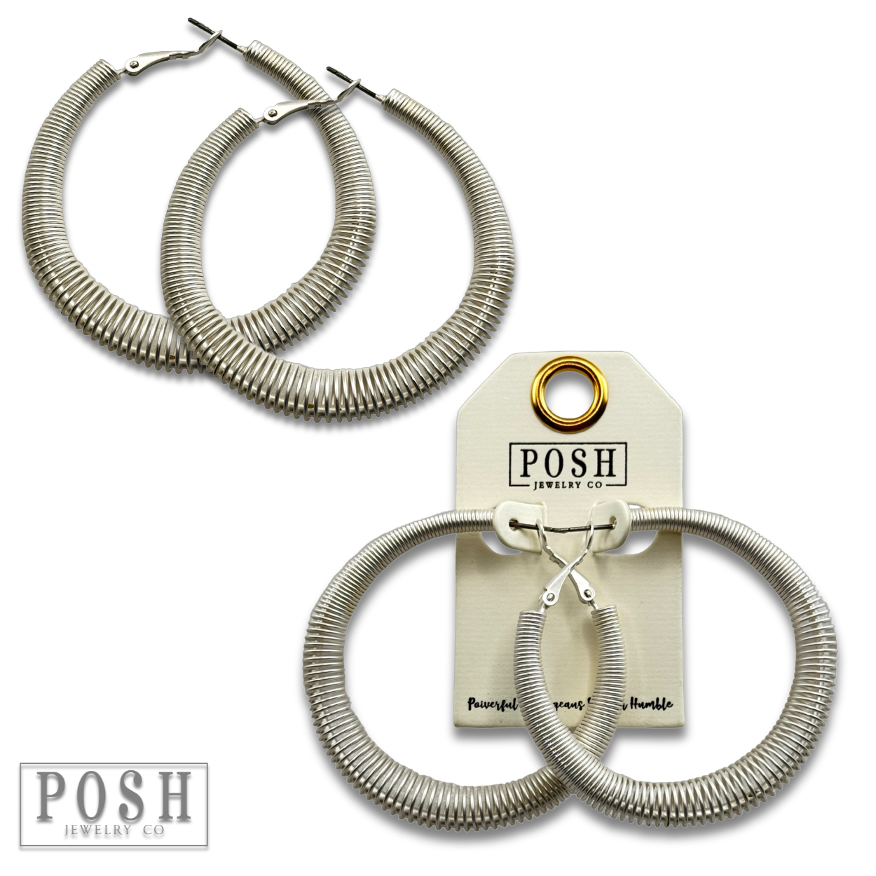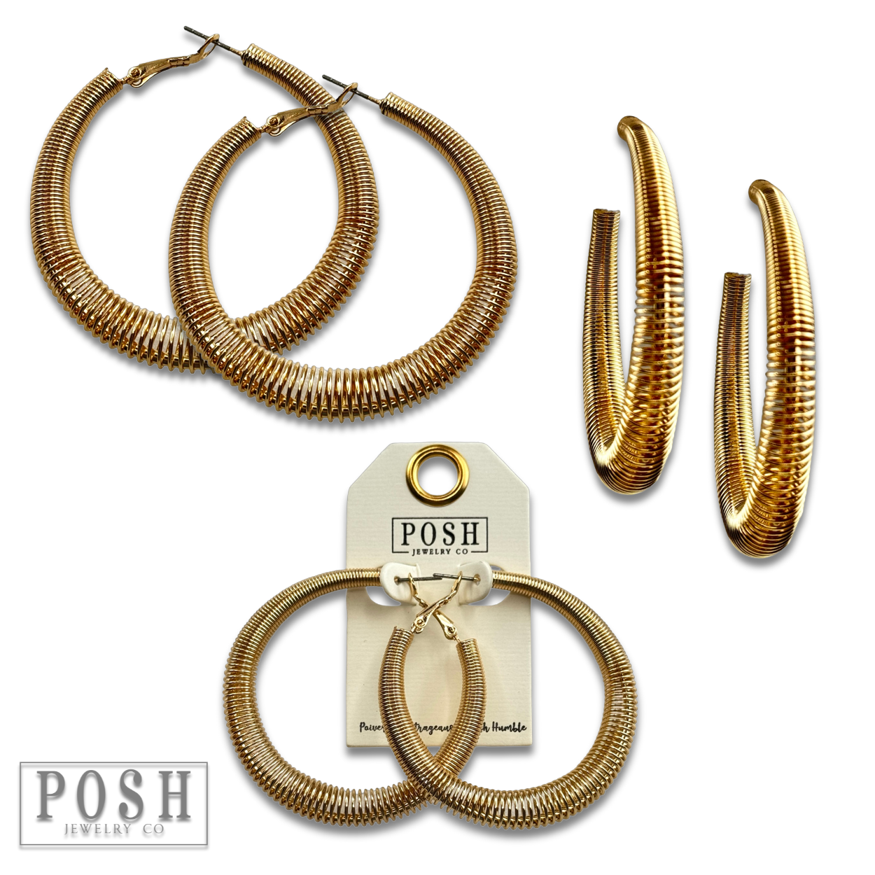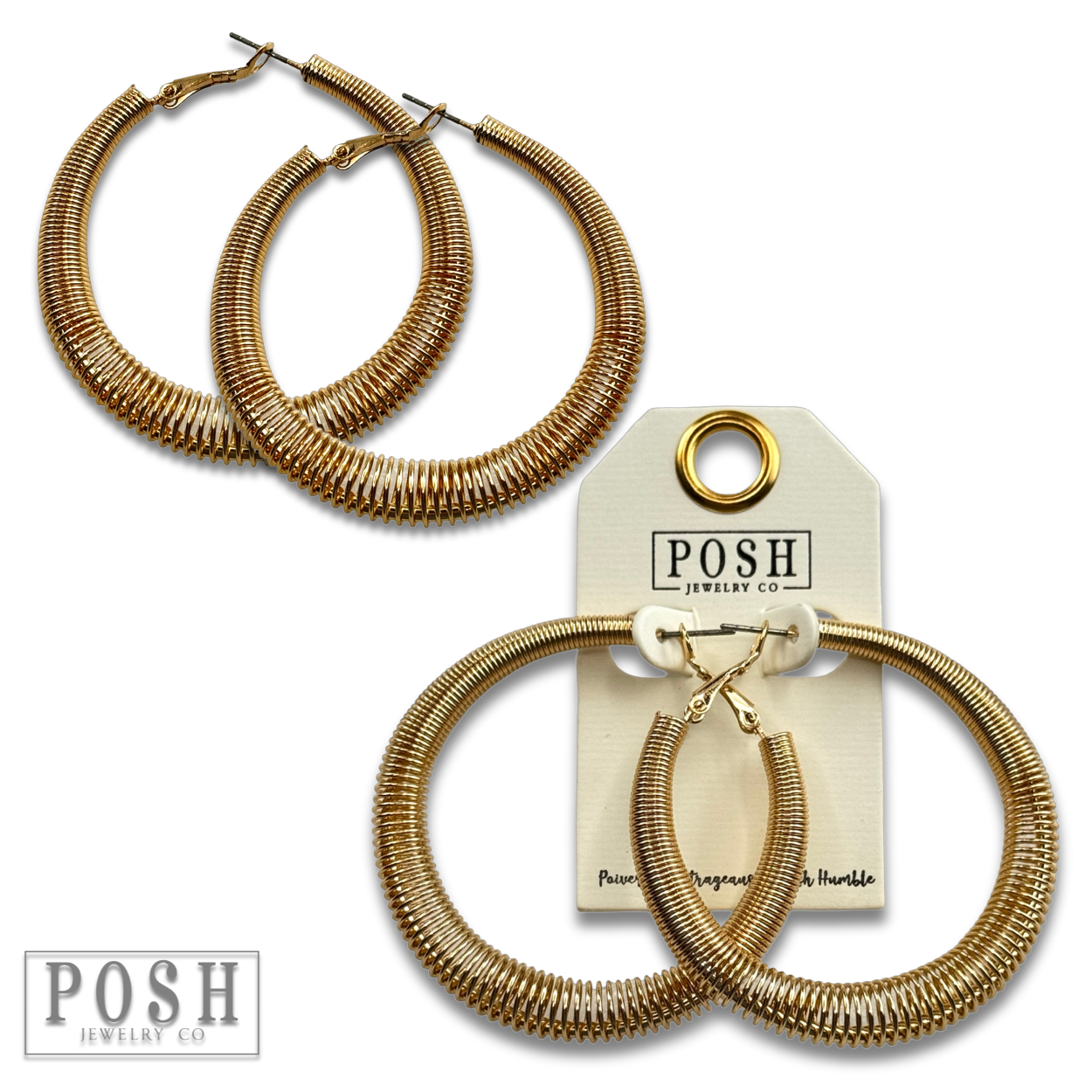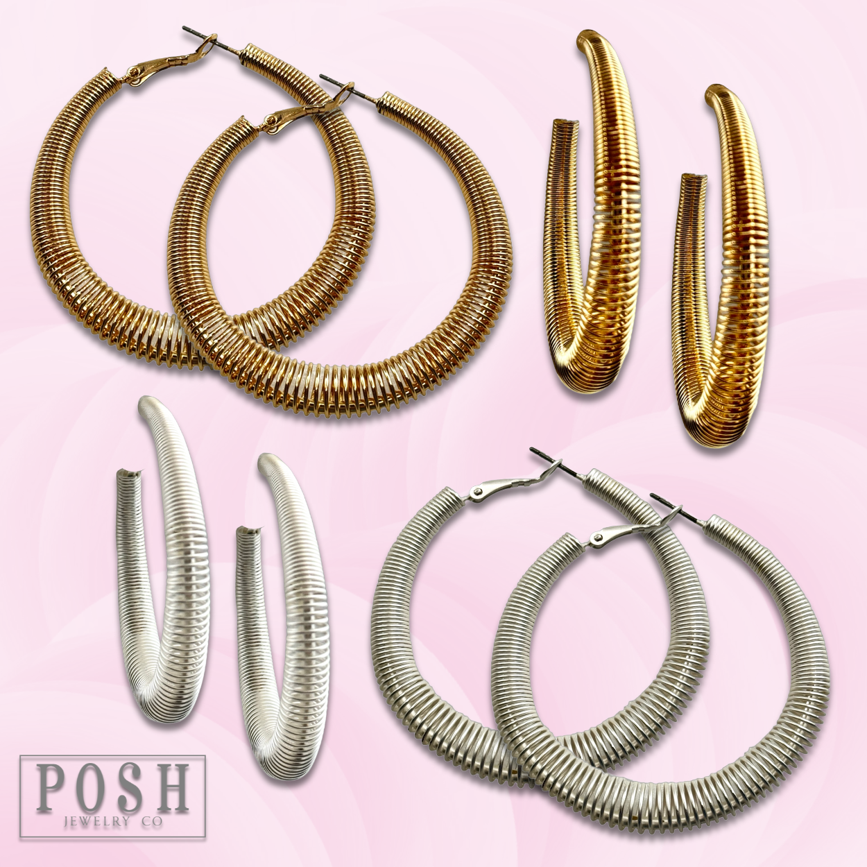 These hoop earrings have a coil spring look to them. Stylish and classic at the same time!