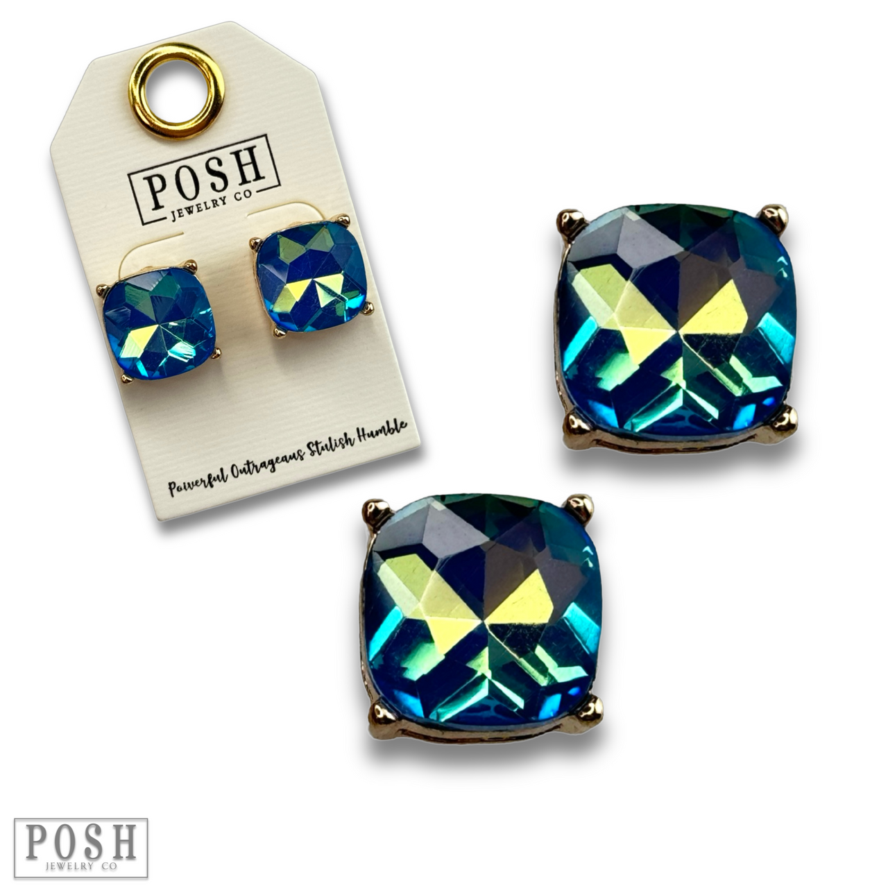These large square rhinestones are in a prong setting and have a post closure.
