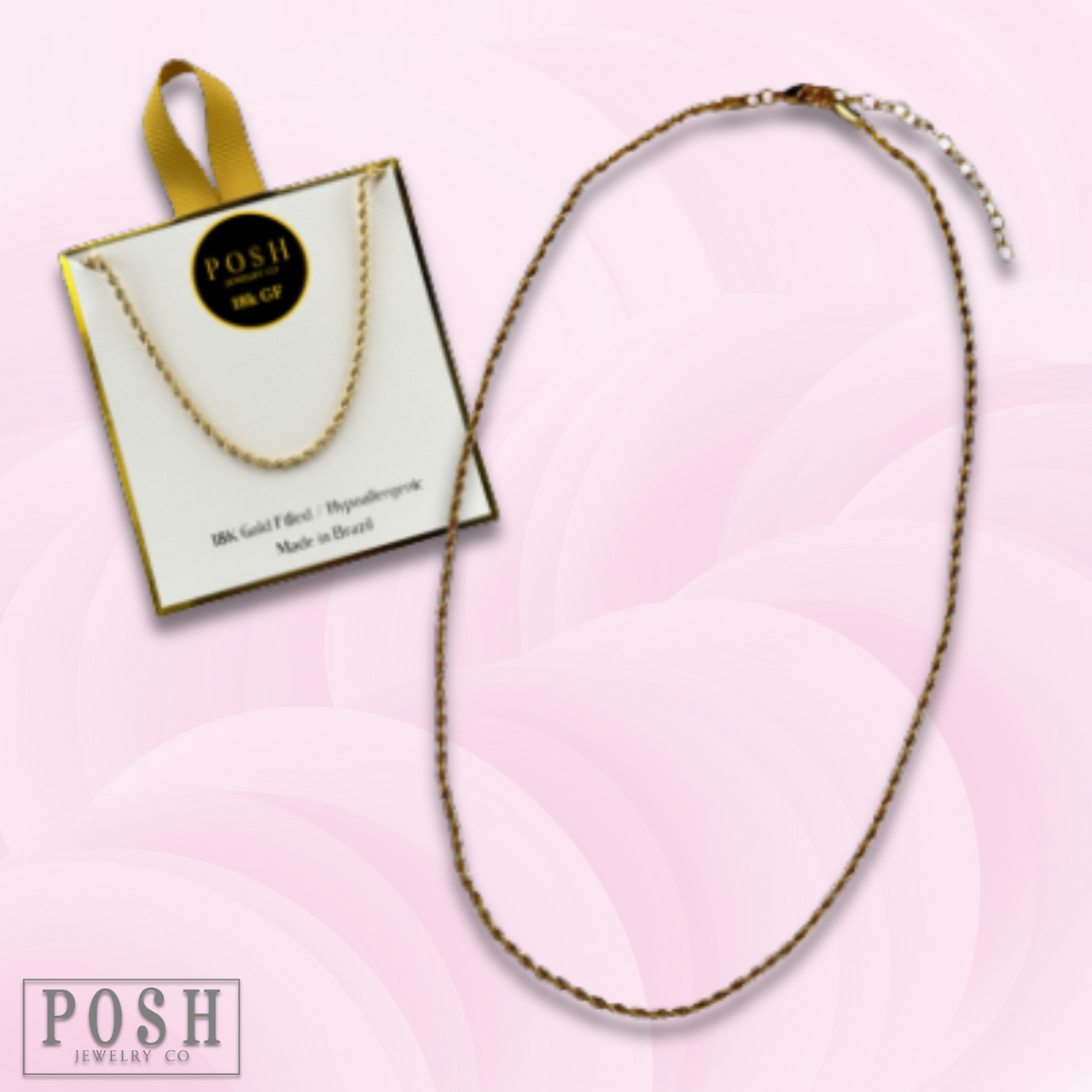 Add a touch of elegance with our 18k gold filled rope chain necklace. Hypoallergenic for sensitive skin, this single strand necklace is 16 inches with a 2 inch extender, providing a customizable fit.