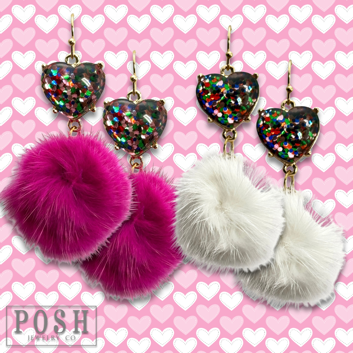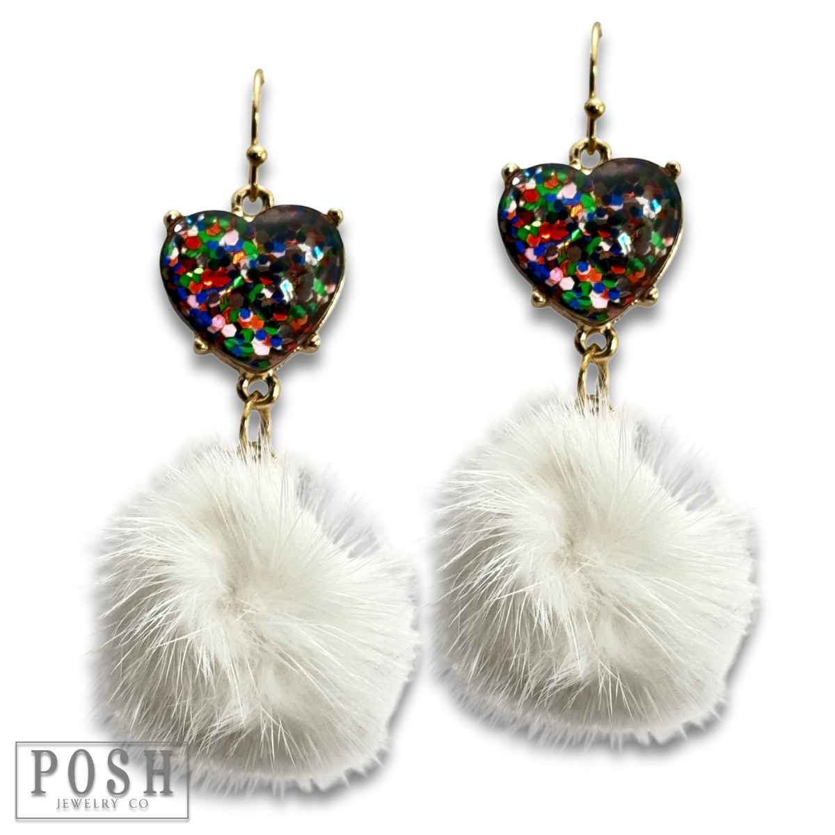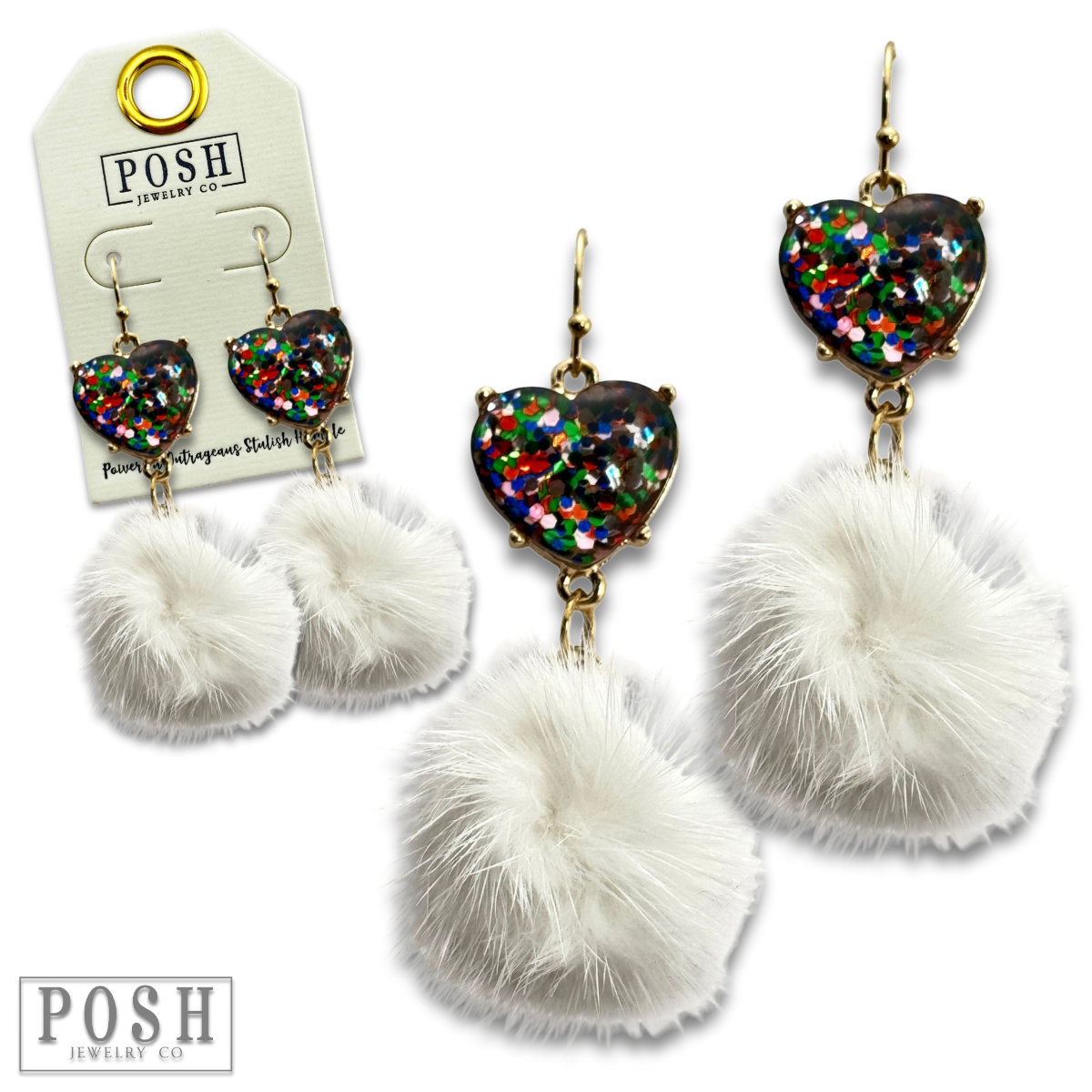 Valentine mosaic heart and puff ball earring