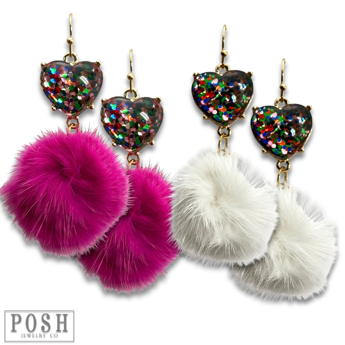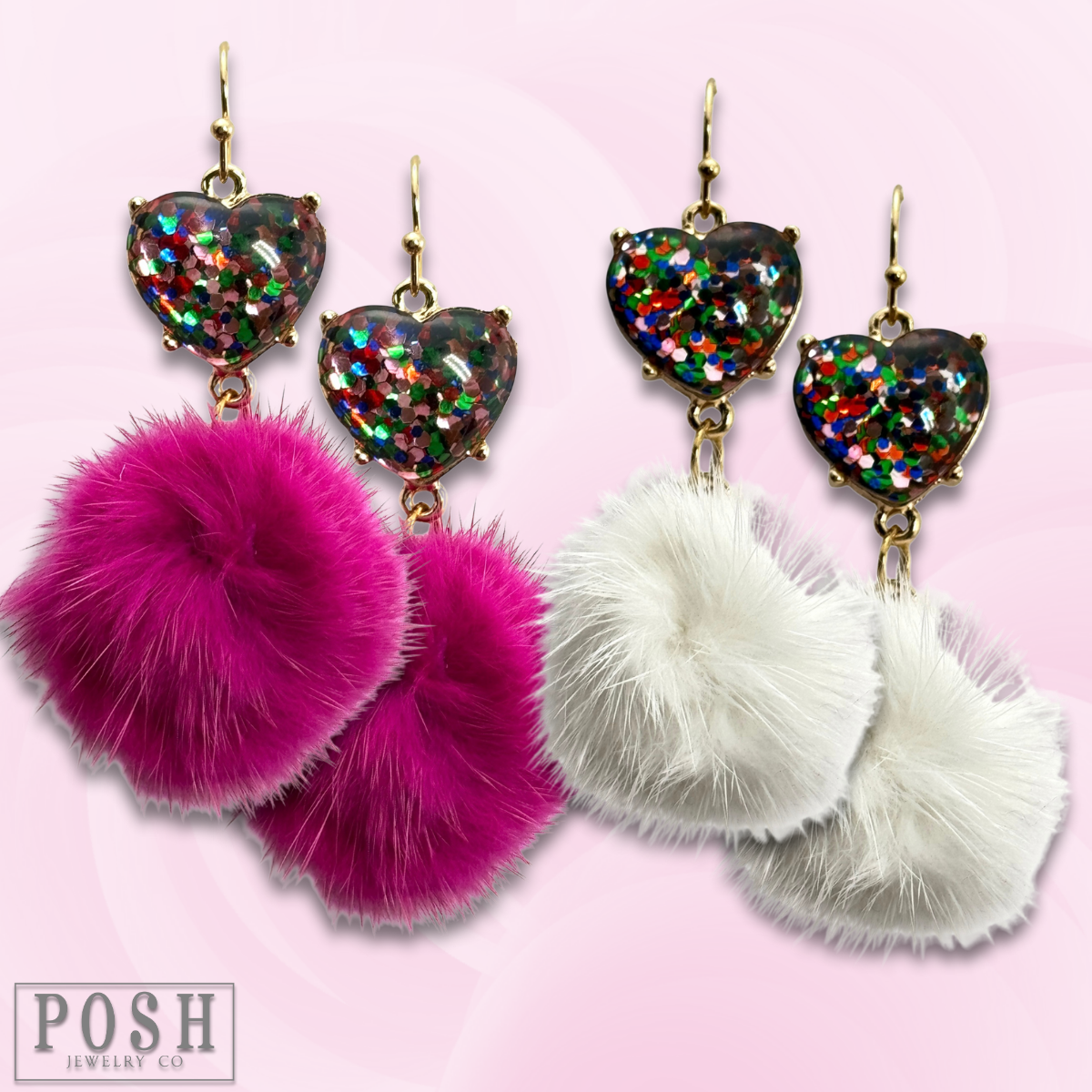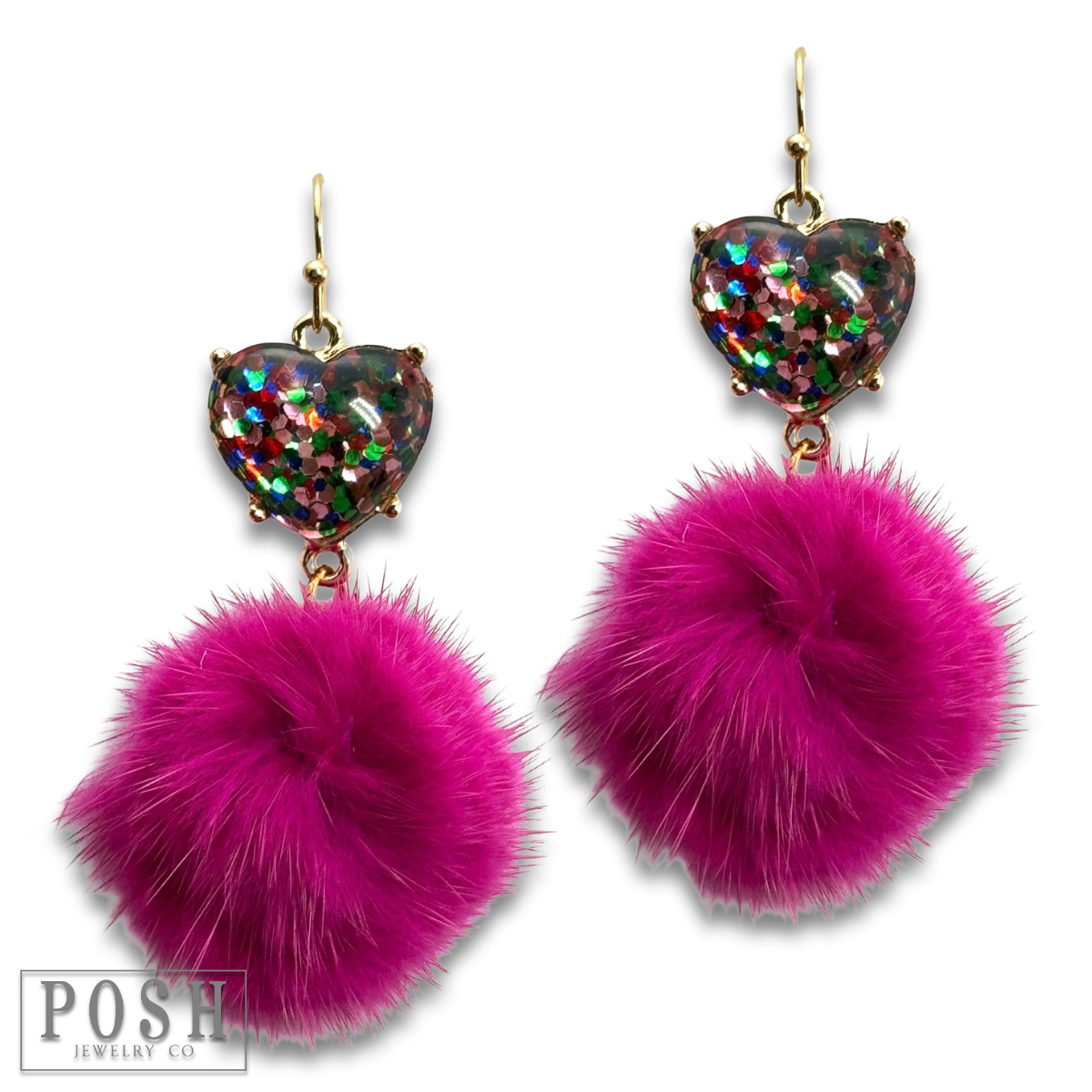 Valentine mosaic heart and puff ball earring
