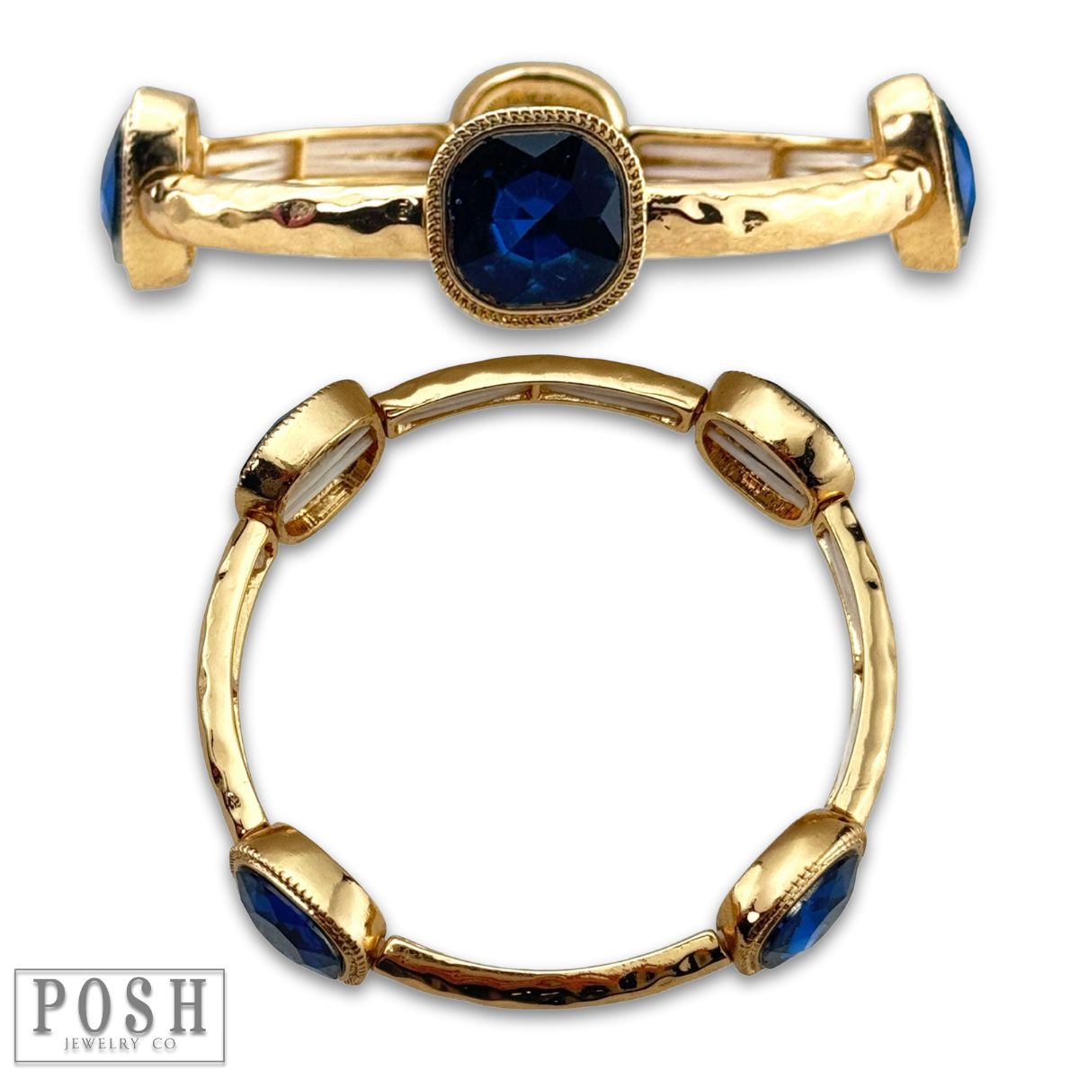 This stretch bracelet has square rhinestones in a gold tone setting.  The bracelet is on the smaller side but it stretches to fit most wrists.