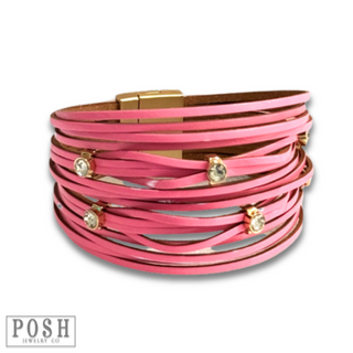 Leather and rhinestone magnetic bracelet