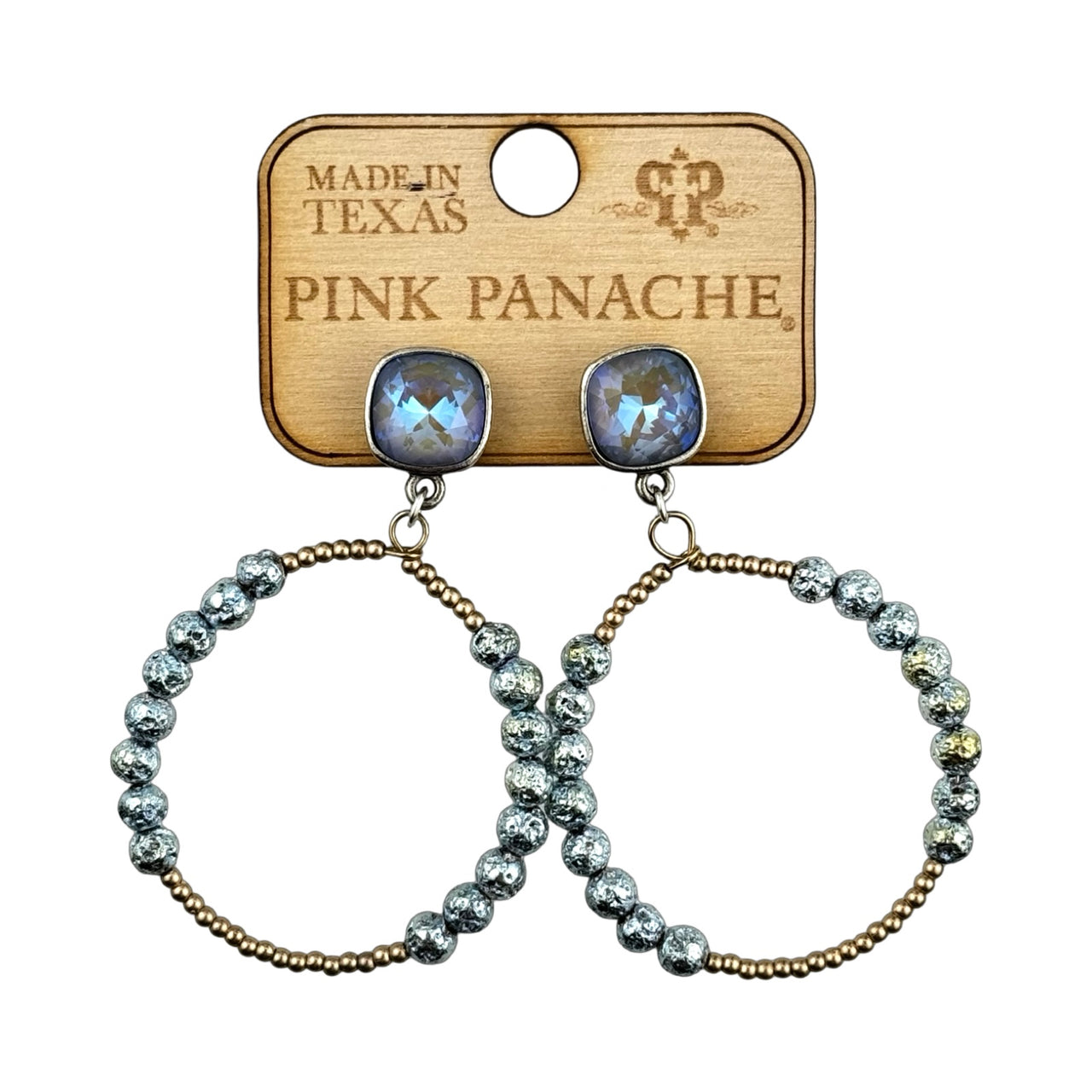 This earring sports a variety of beads in a circle and they hang from a 10mm Austrian crystal post in a setting that was custom made for Pink Panache in the USA.
