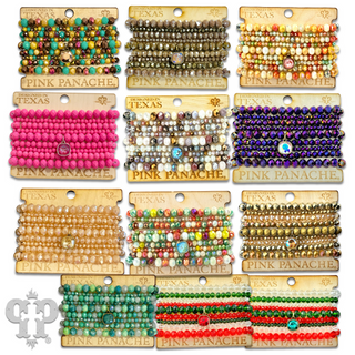Large wood and foil texture bead bracelet stack with rhinestone charm - LC