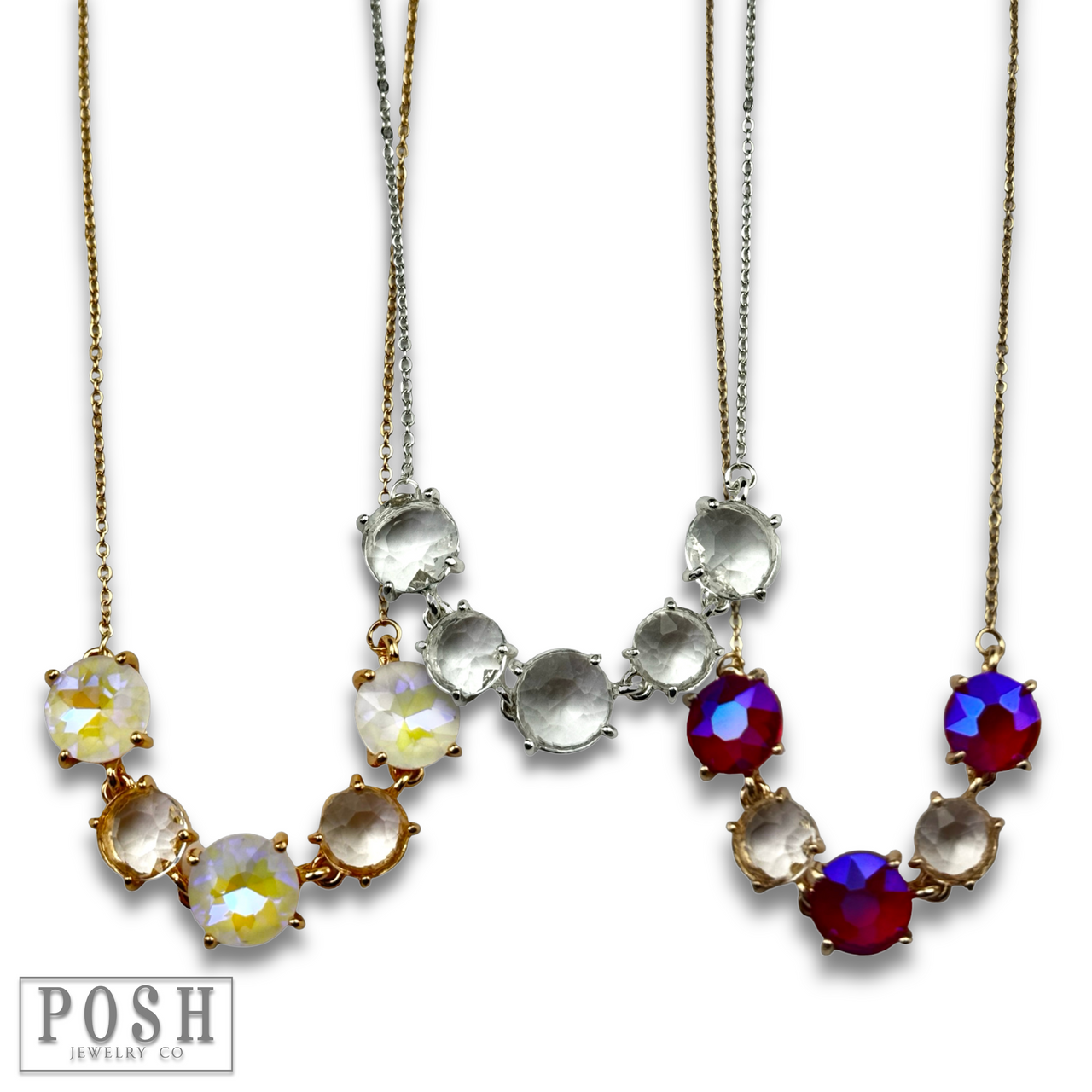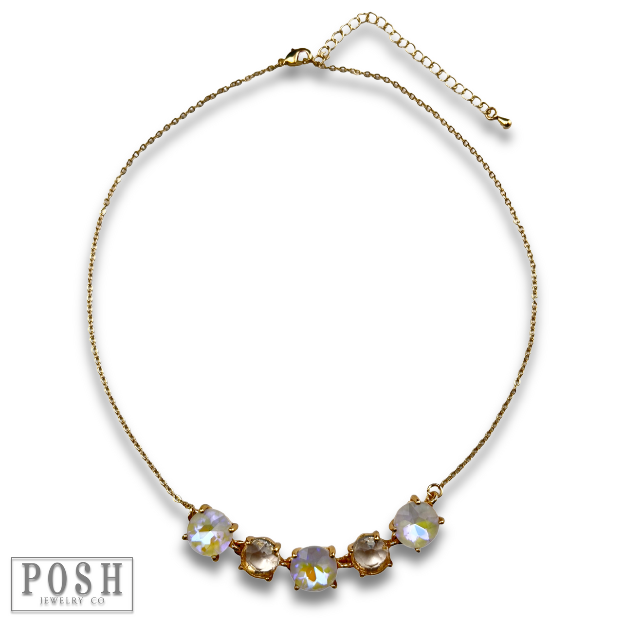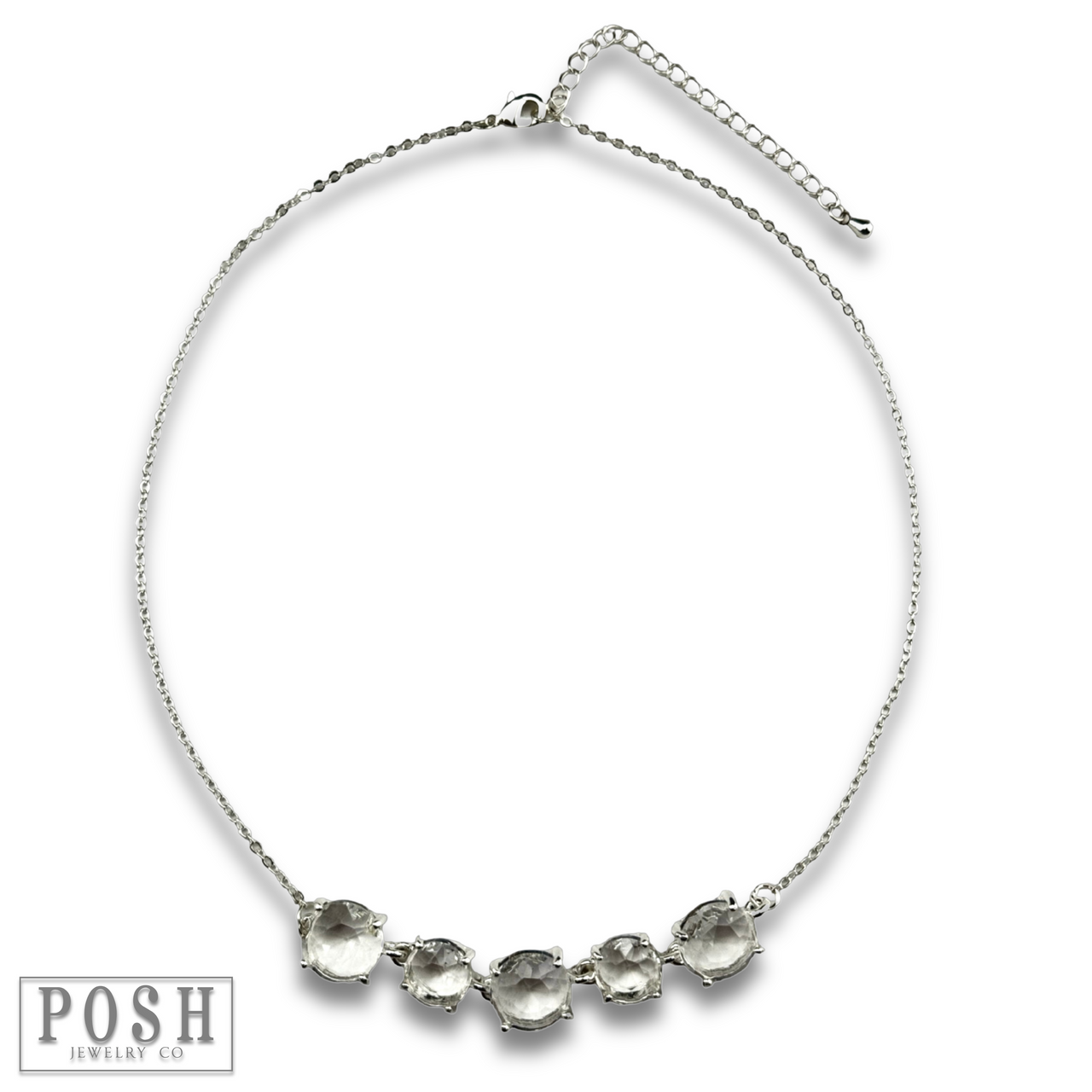 Get ready to make a statement with this chain necklace adorned with five sparkling round rhinestones!
