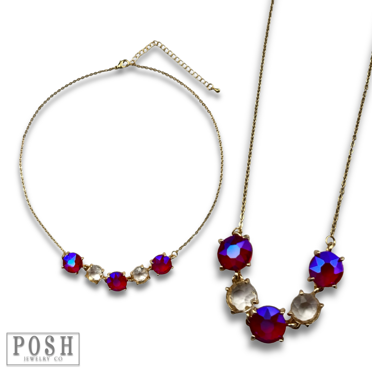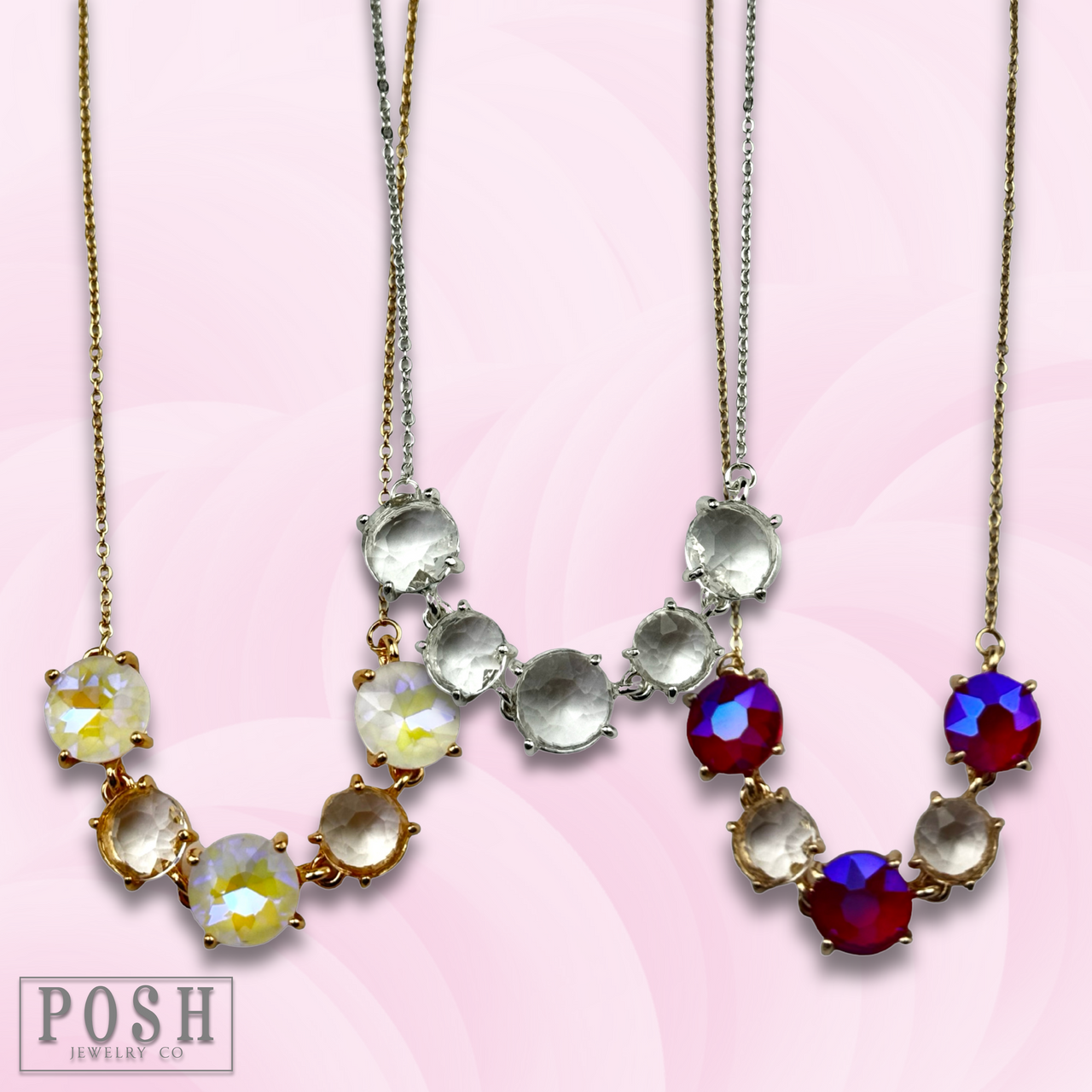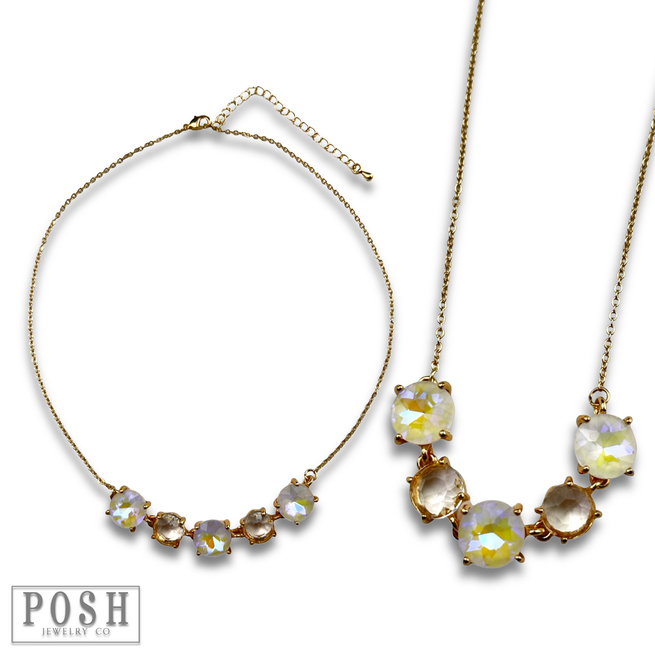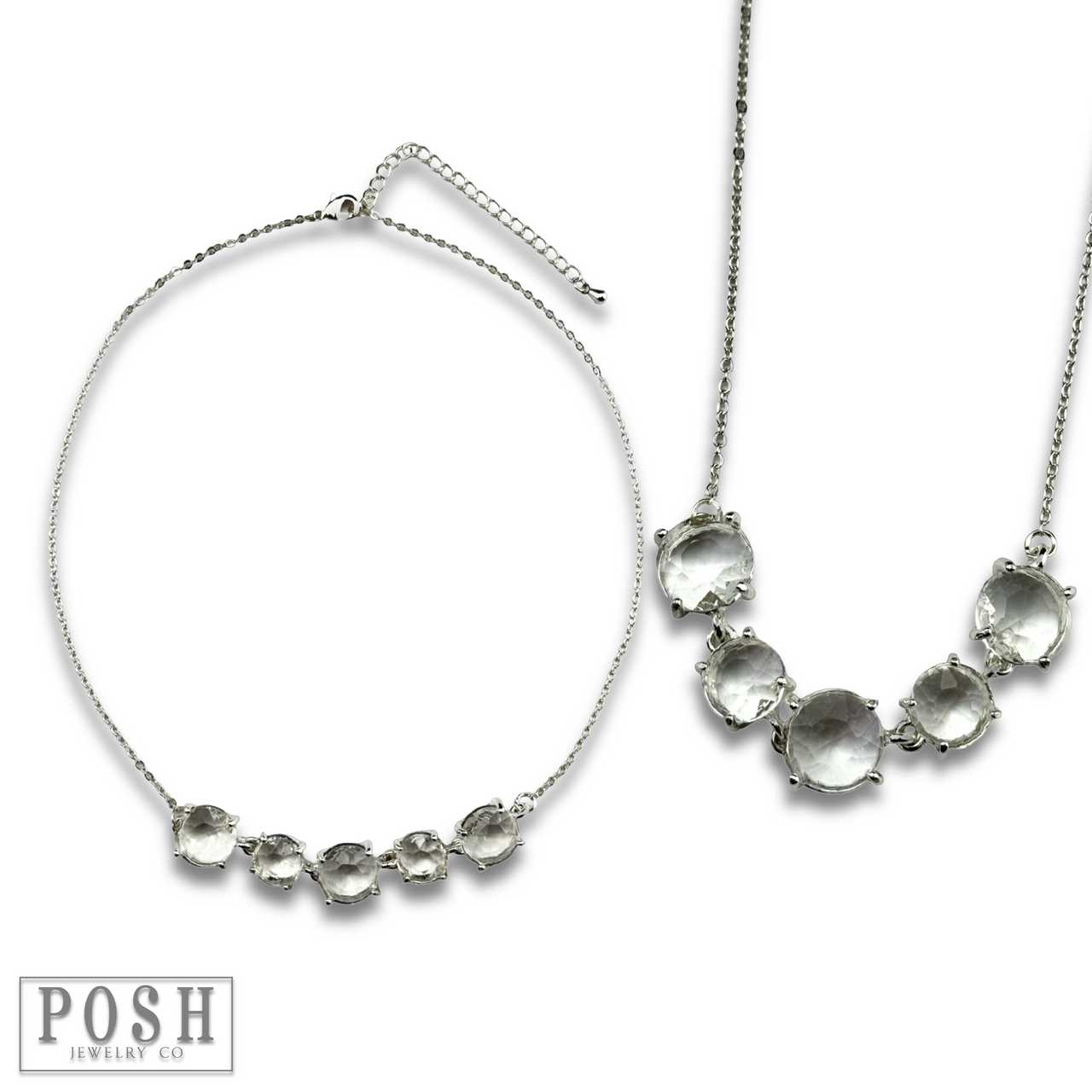 Get ready to make a statement with this chain necklace adorned with five sparkling round rhinestones!