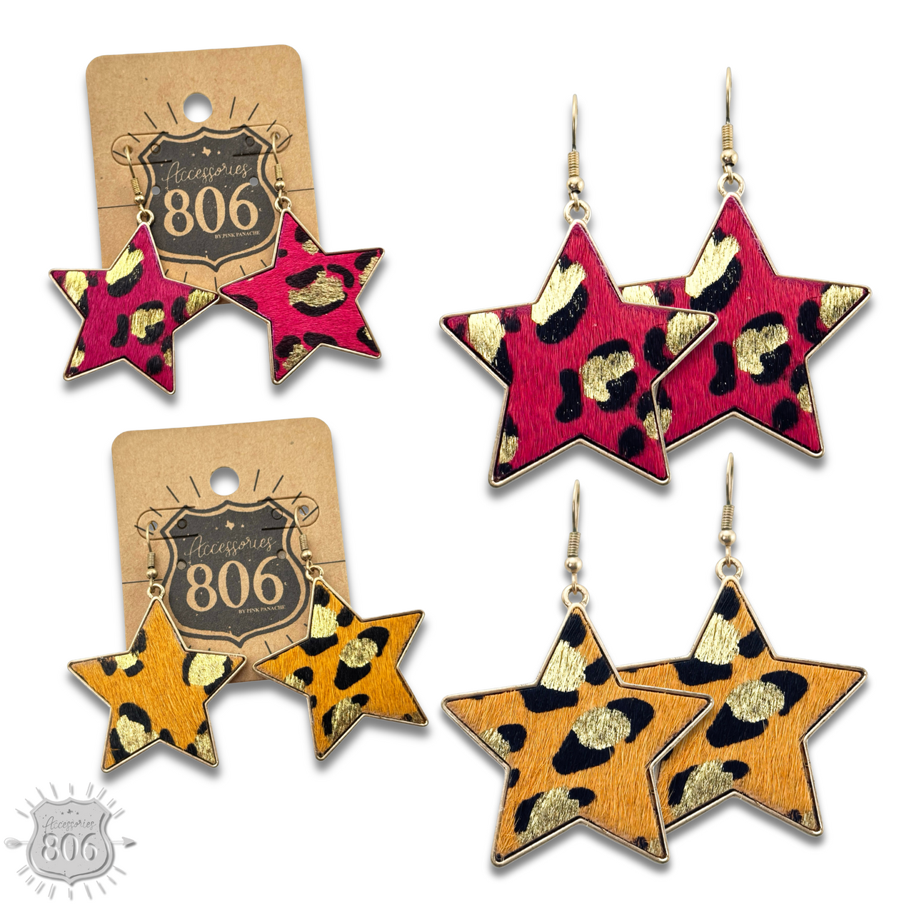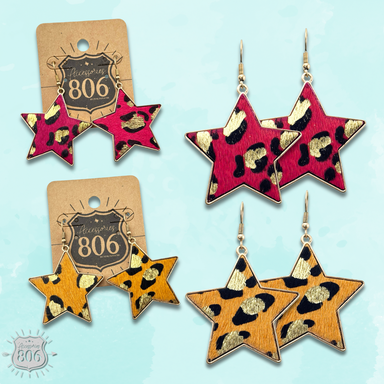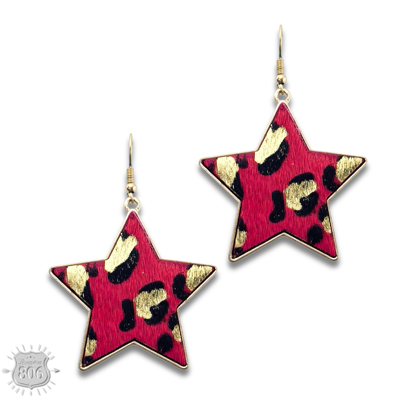 This star shape earring has a colorful leopard inlay on a french wire setting. Approximately 2 inches in length.