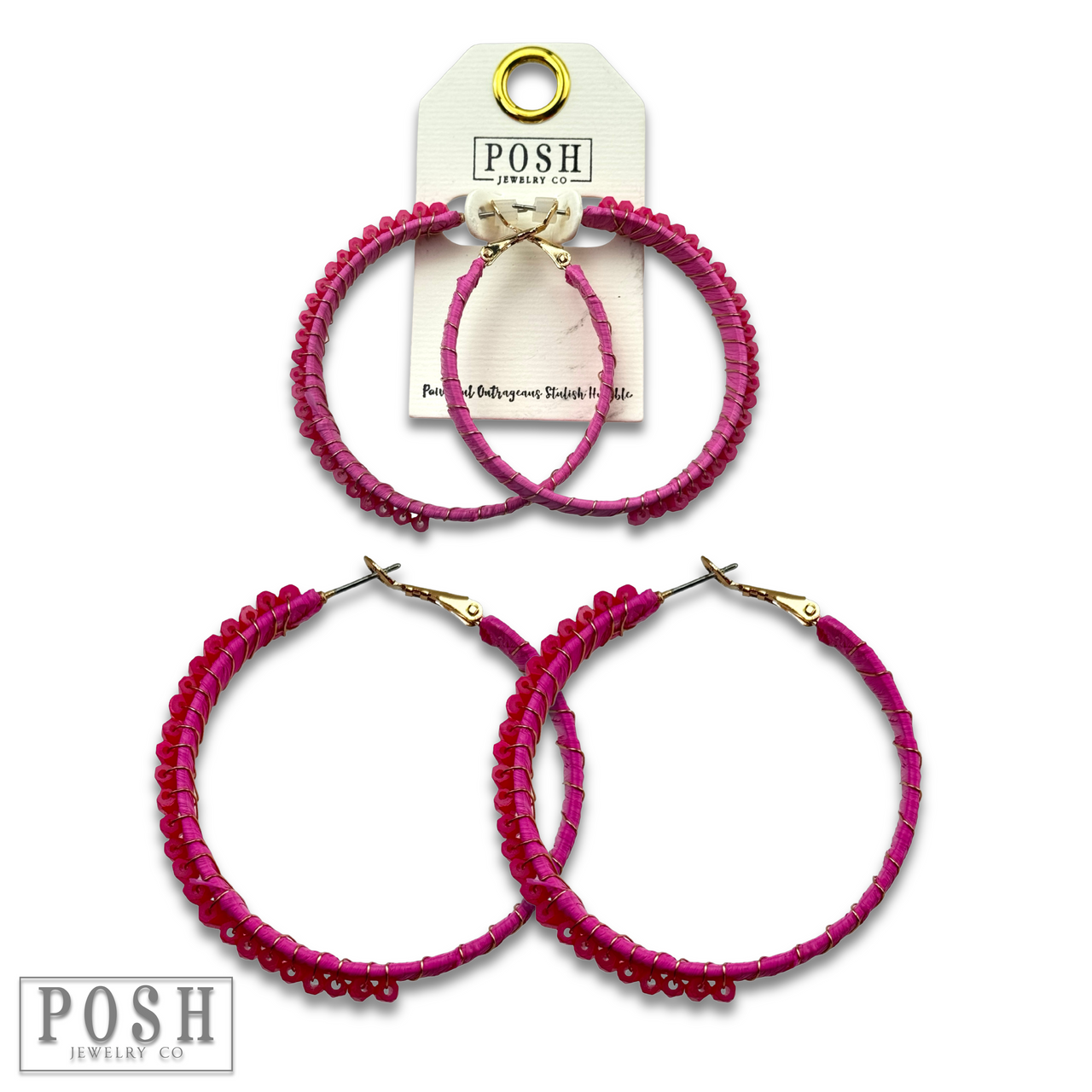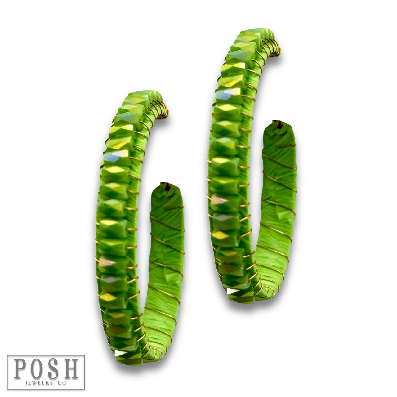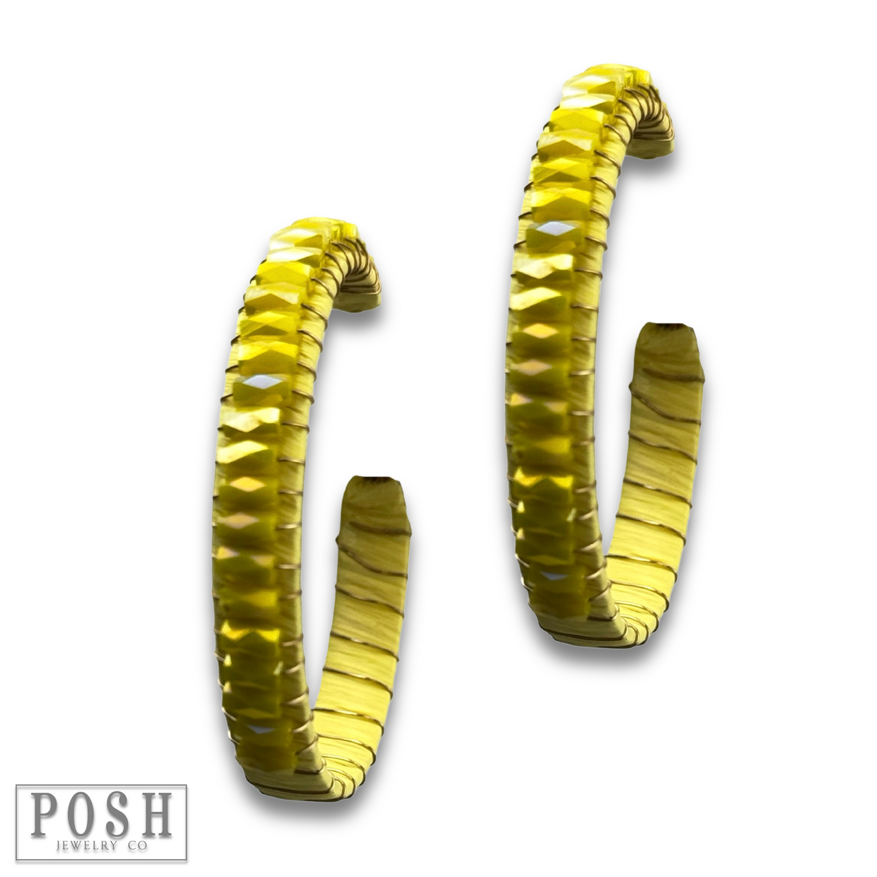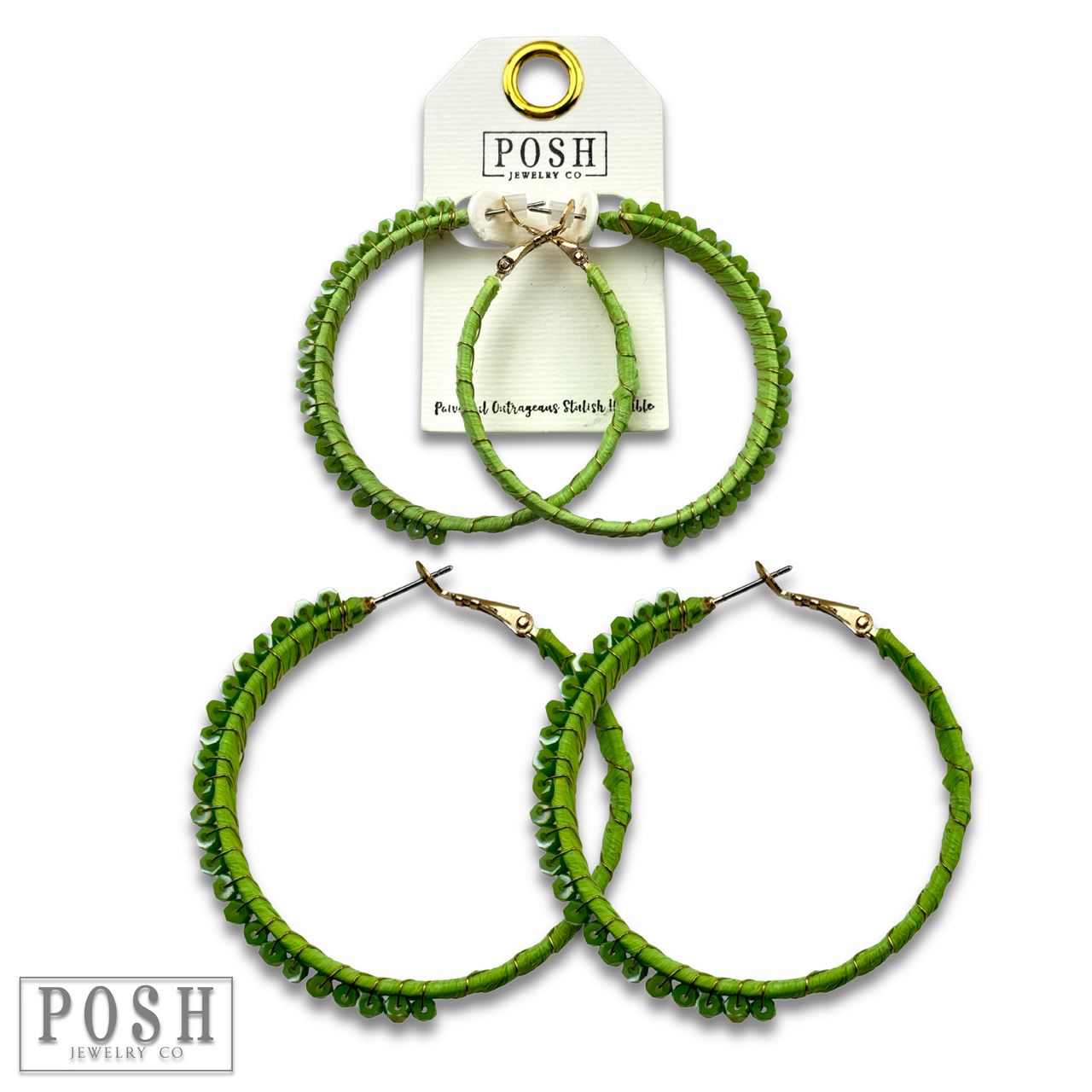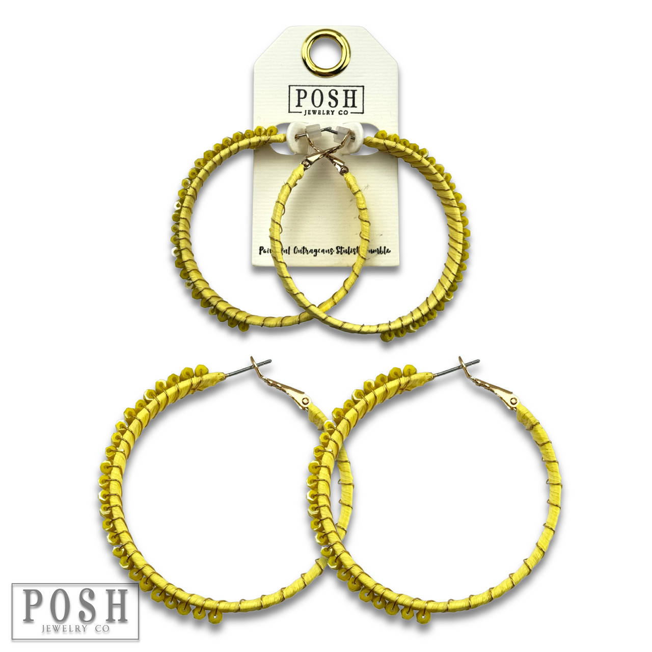 Get ready to wrap up your look with these fab hoop earrings! Made with raffia and adorned with crystal stones.