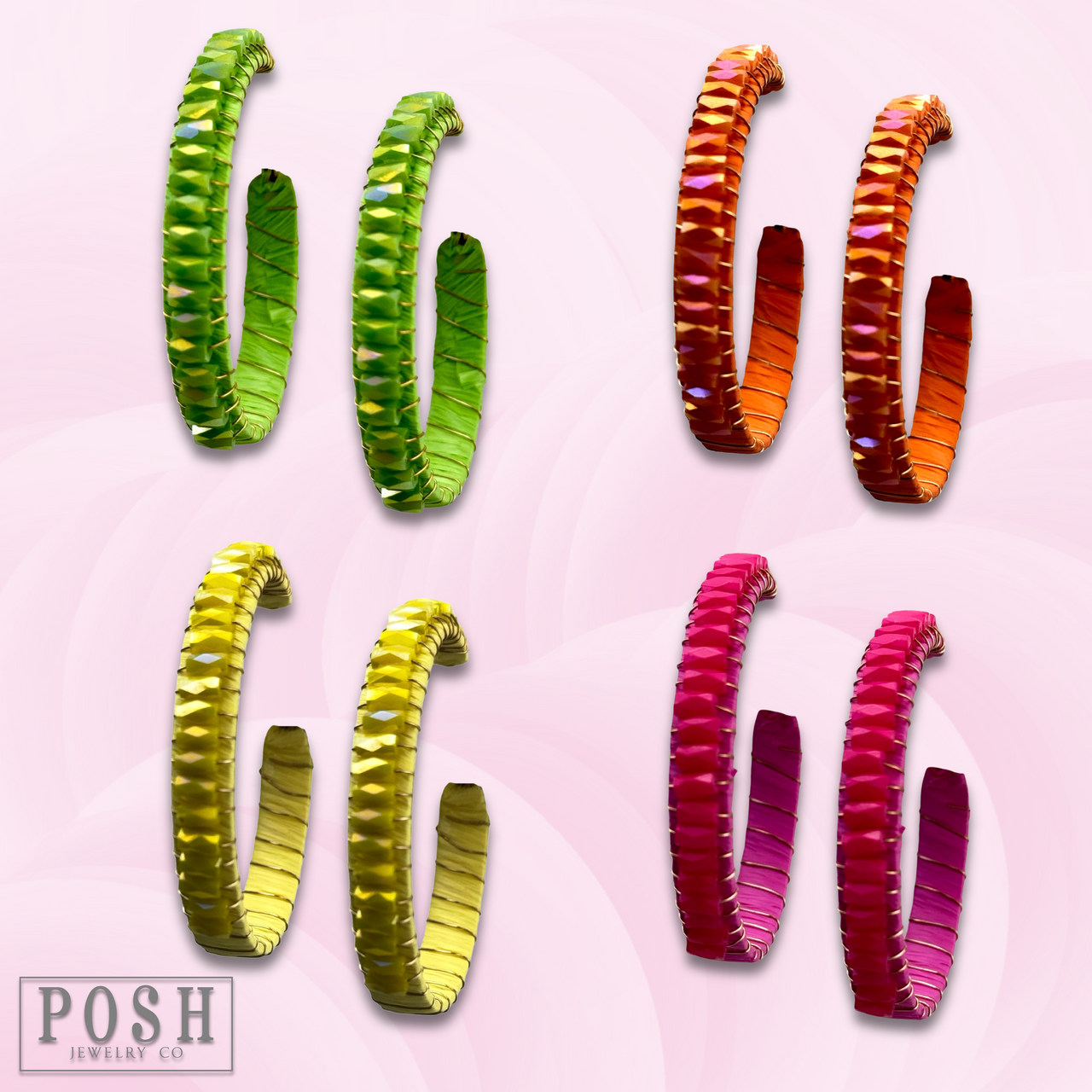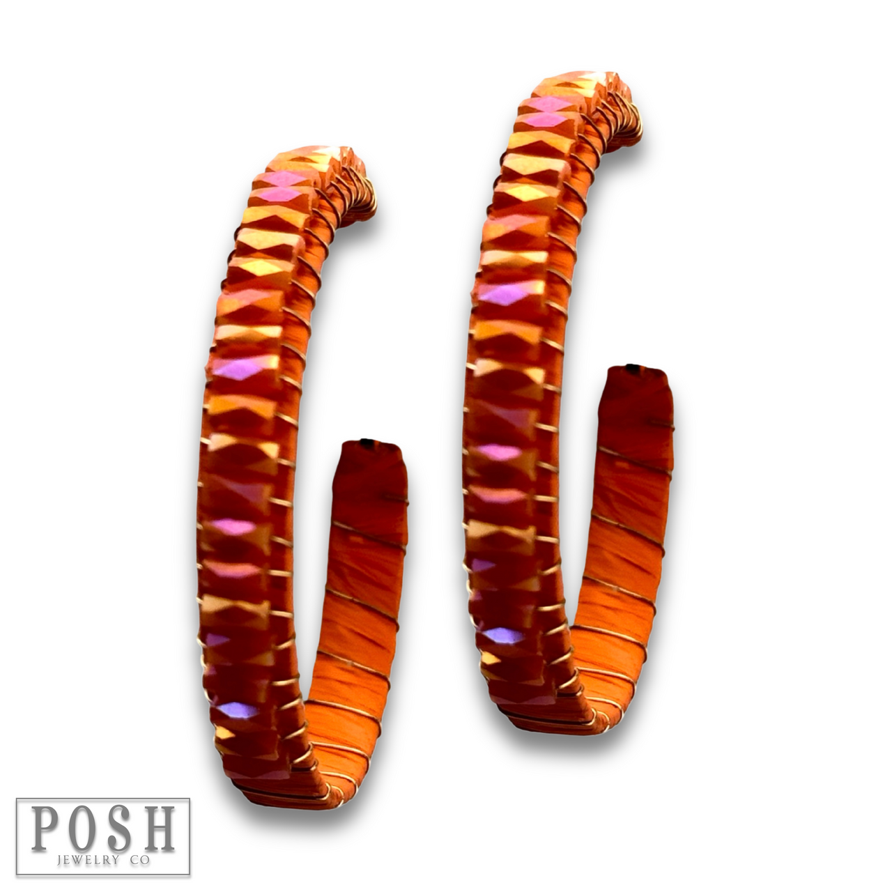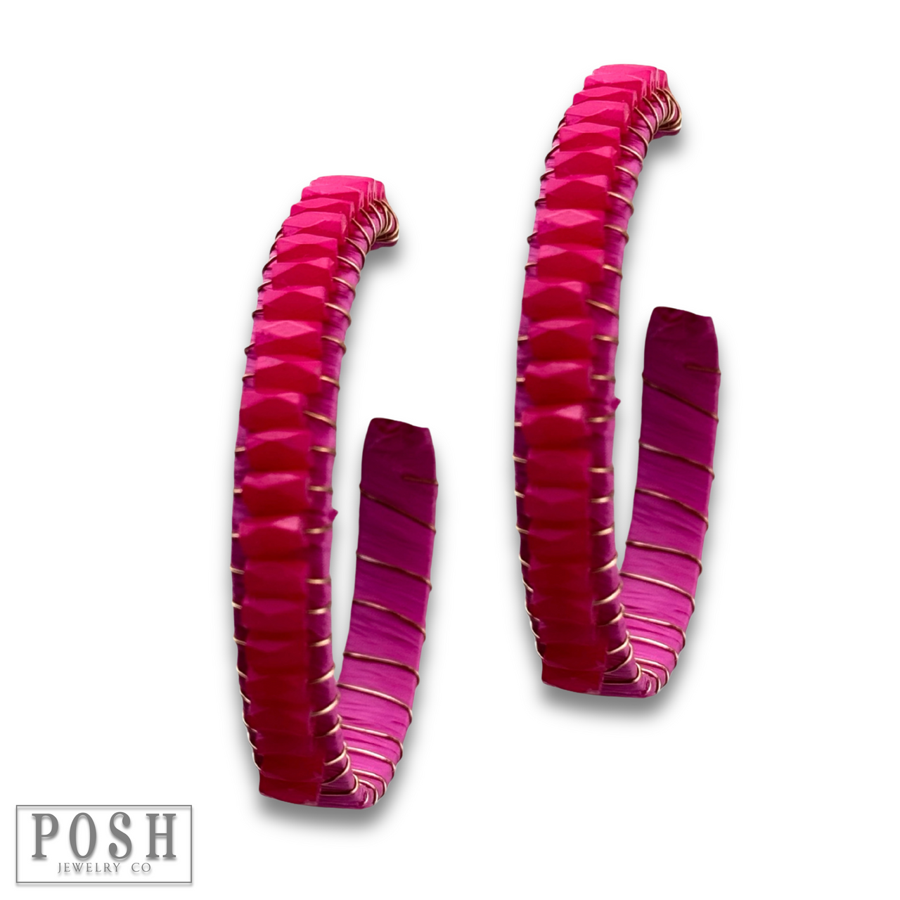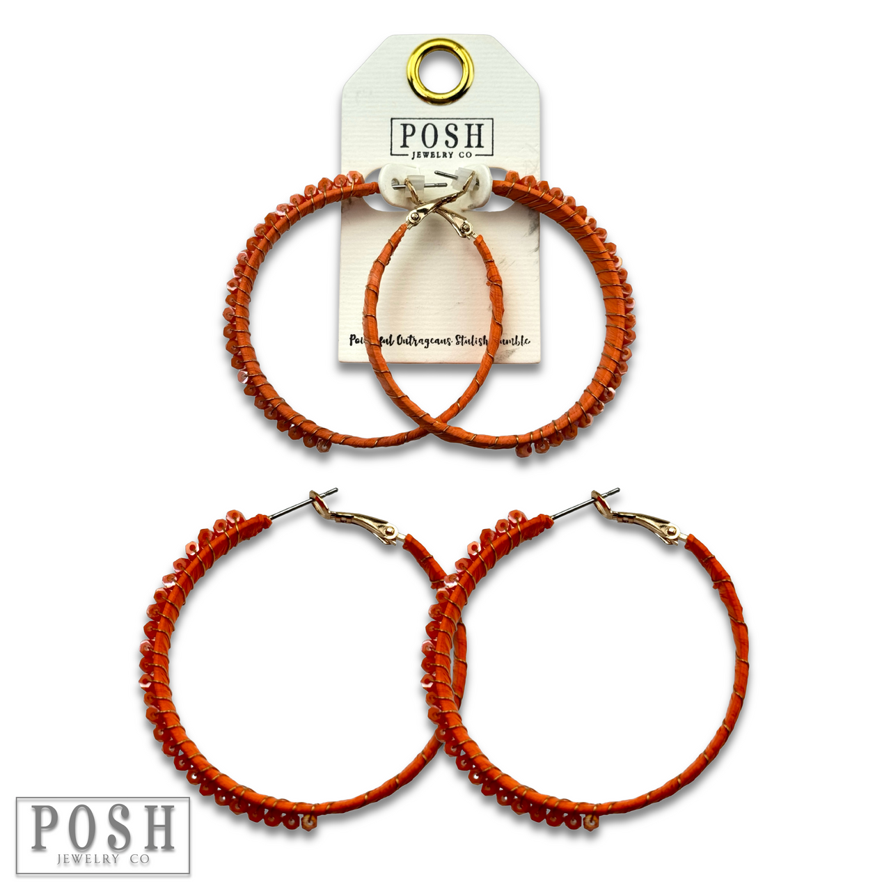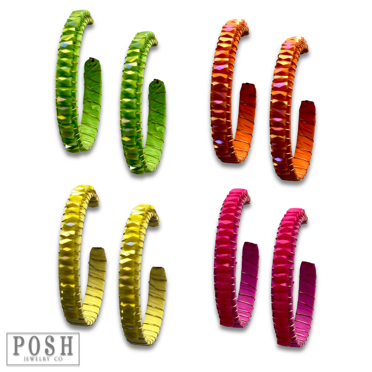 Get ready to wrap up your look with these fab hoop earrings! Made with raffia and adorned with crystal stones.