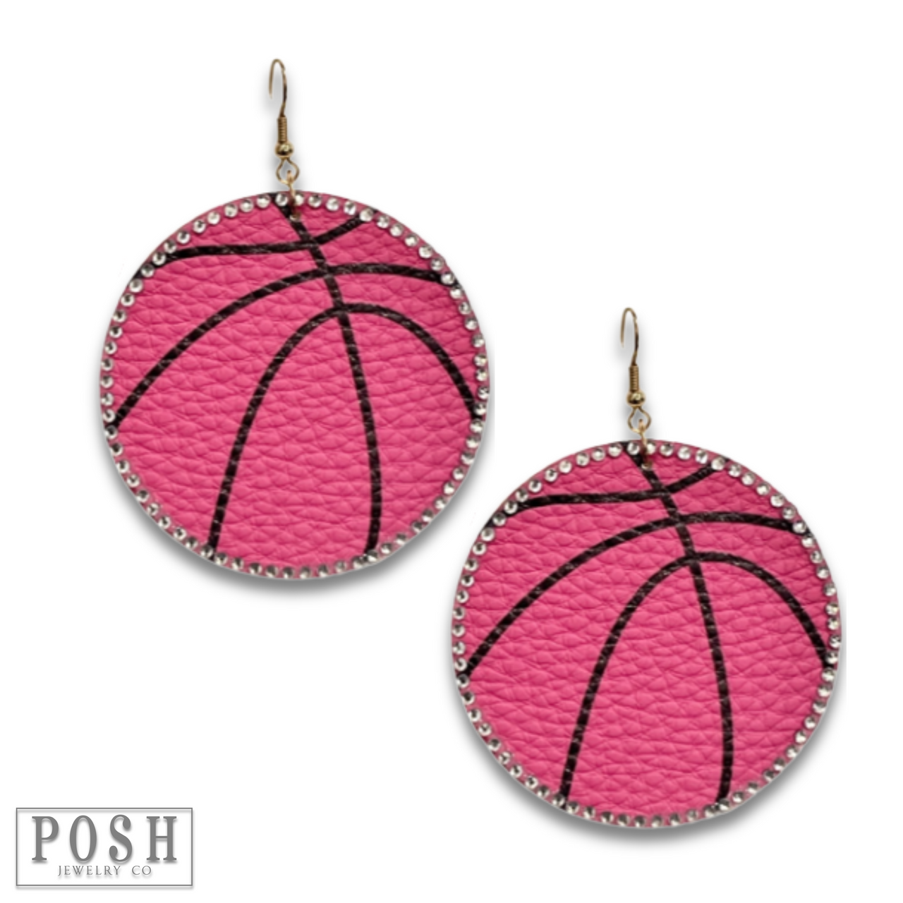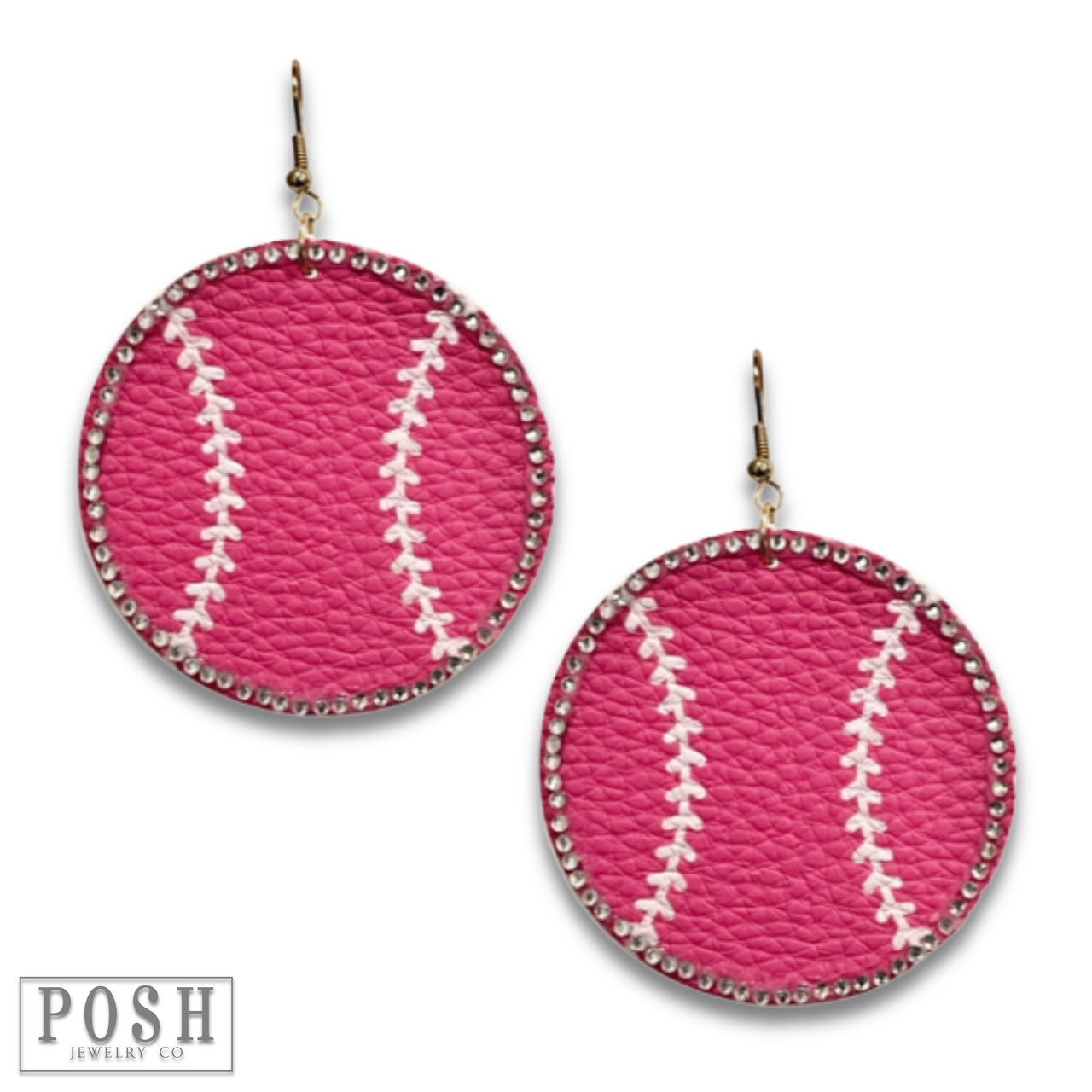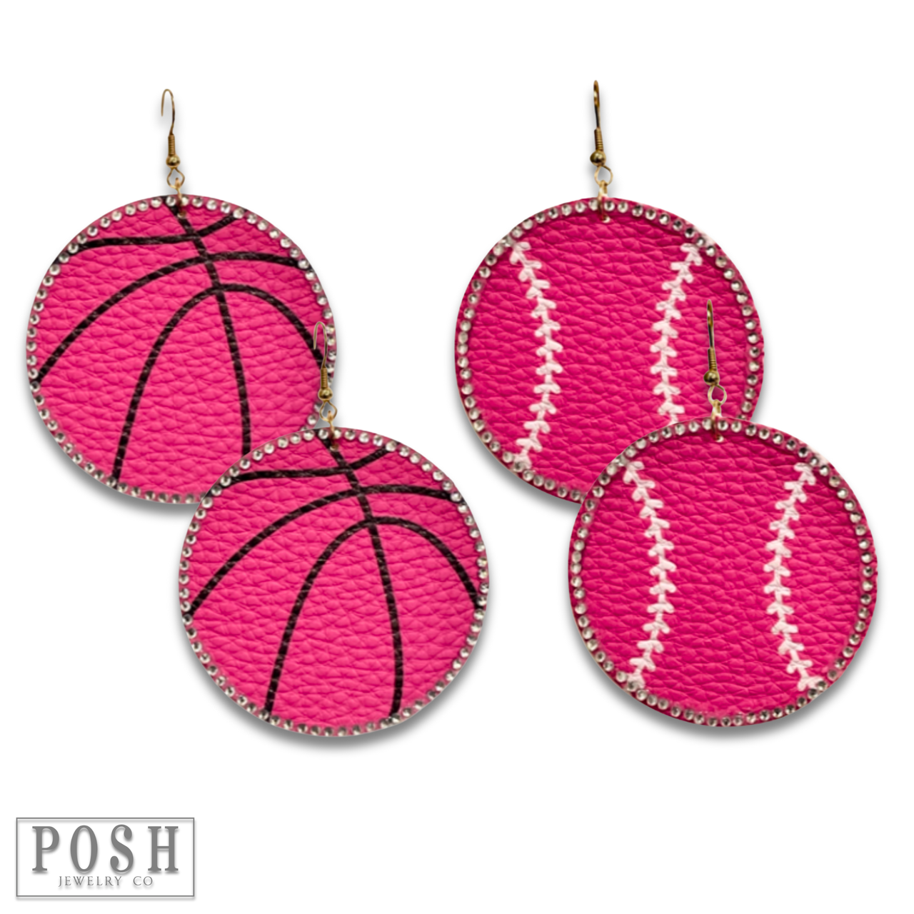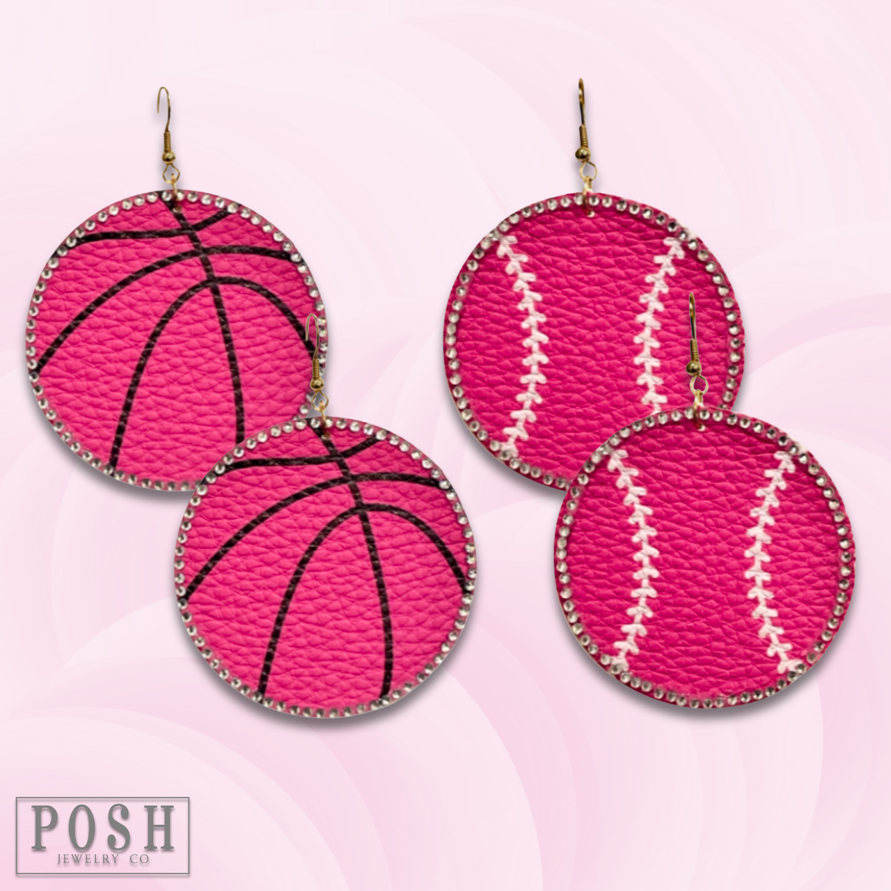 Game-day earrings for three big sports! They're made with vegan leather and rimmed in rhinestones