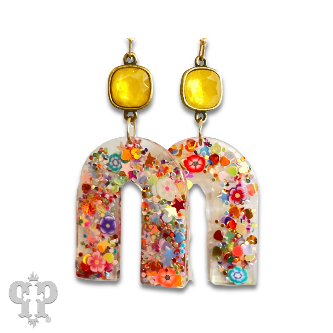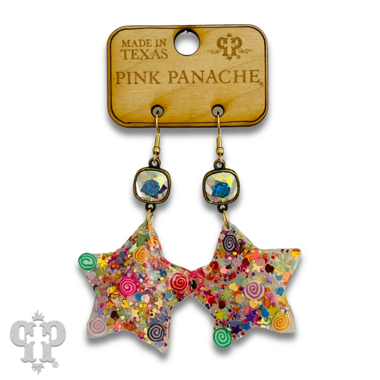Add some funky flair to your fashion with these acrylic earrings featuring an Austrian crystal accent.
