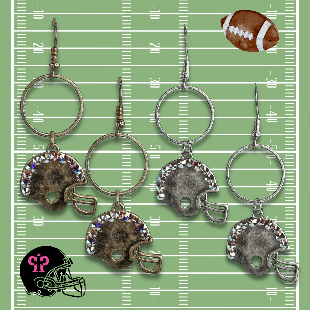 Football helmet earring with Austrian crystals