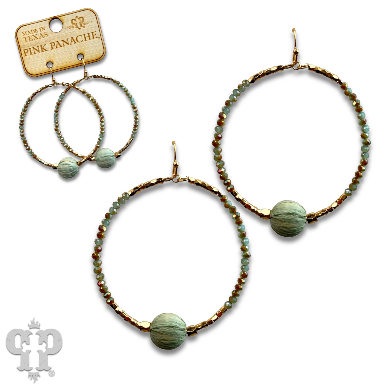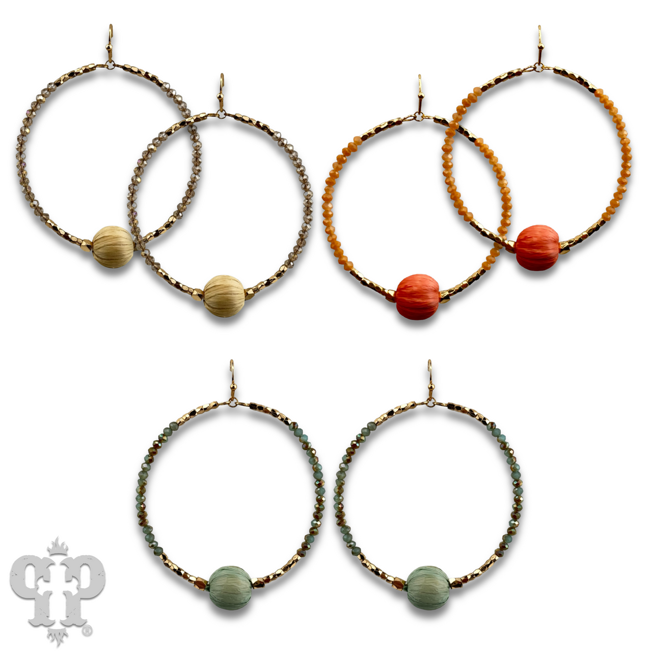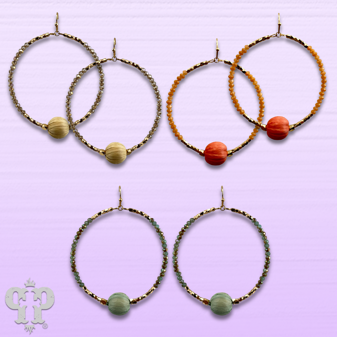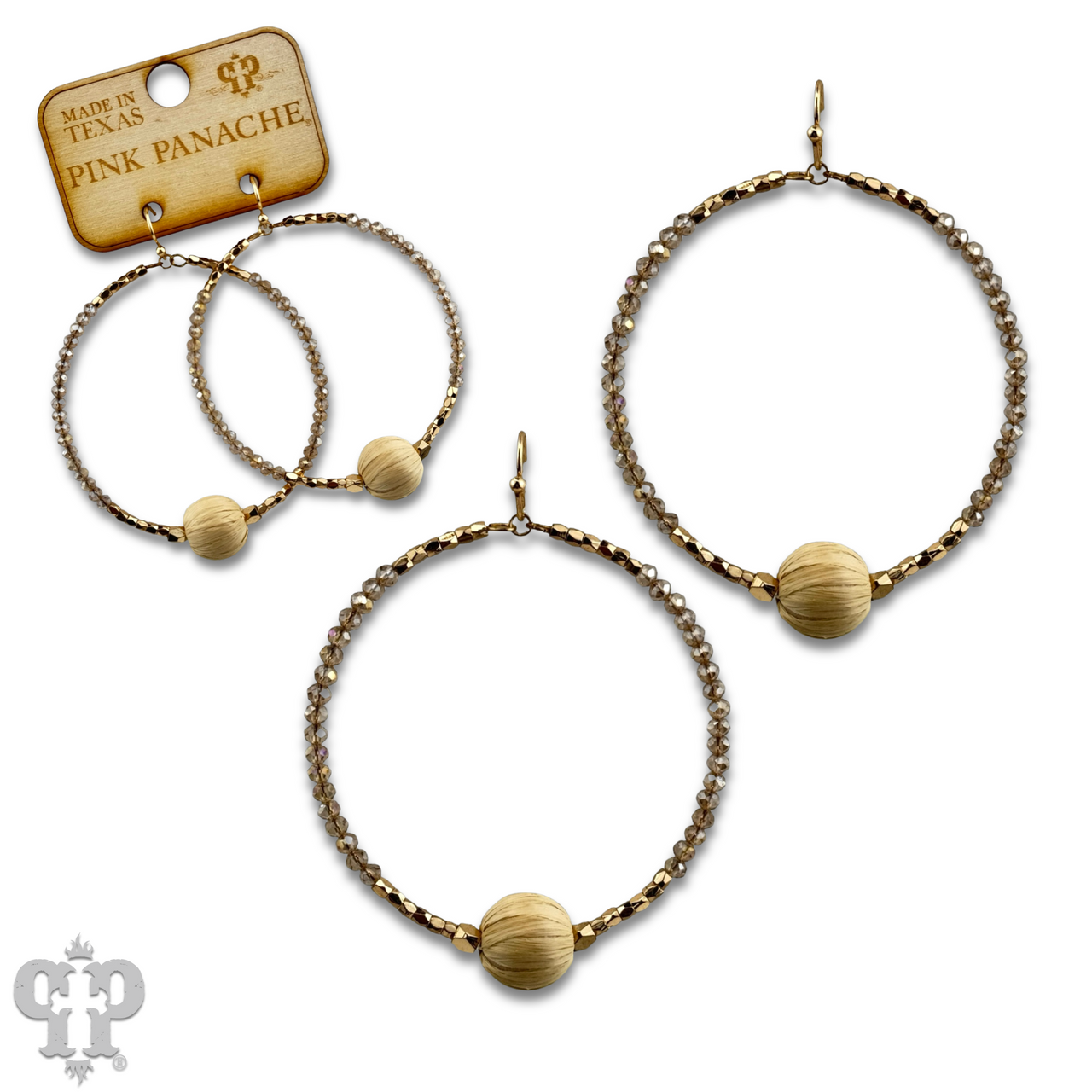 Seed bead circle earring with raffia bead and Austrian crystal