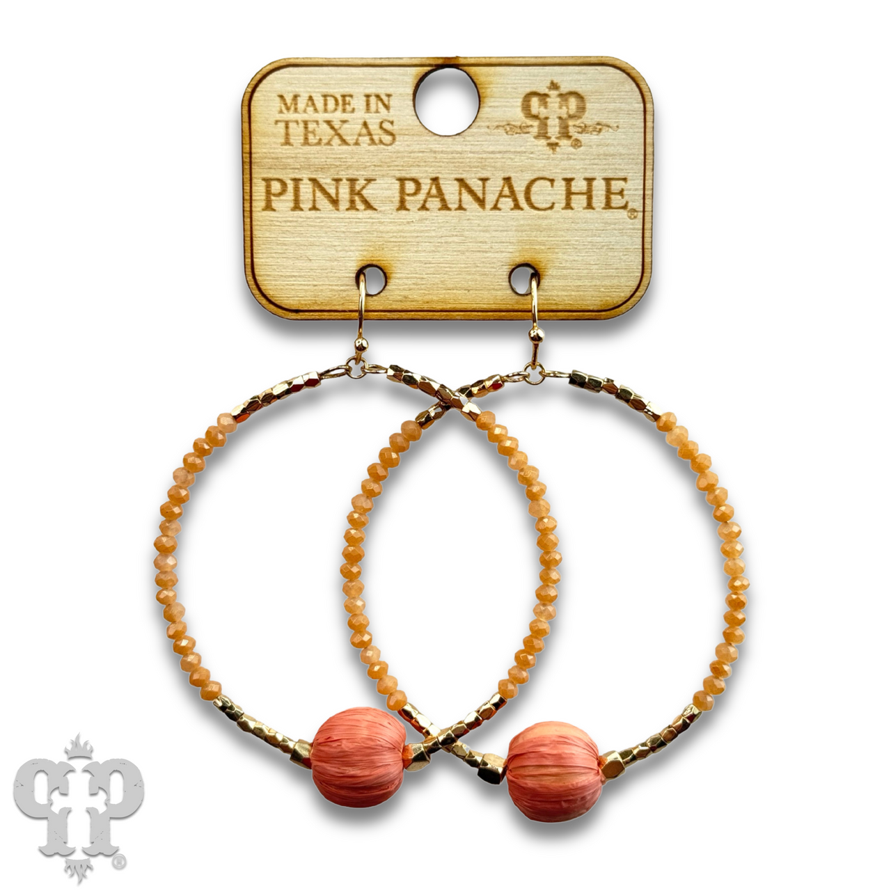 This circle earring boasts a bold raffia bead and delicate seed beads around the circle. Light weight yet makes a statement.