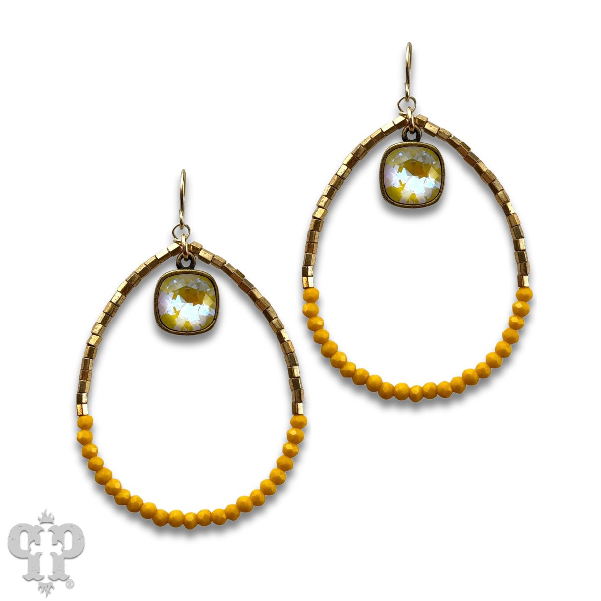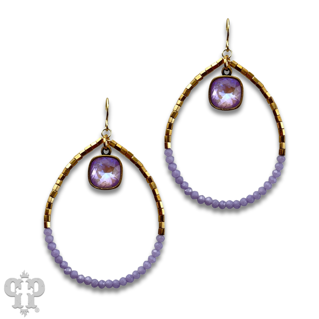 Square and seed bead teardrop earring, Austrian crystal