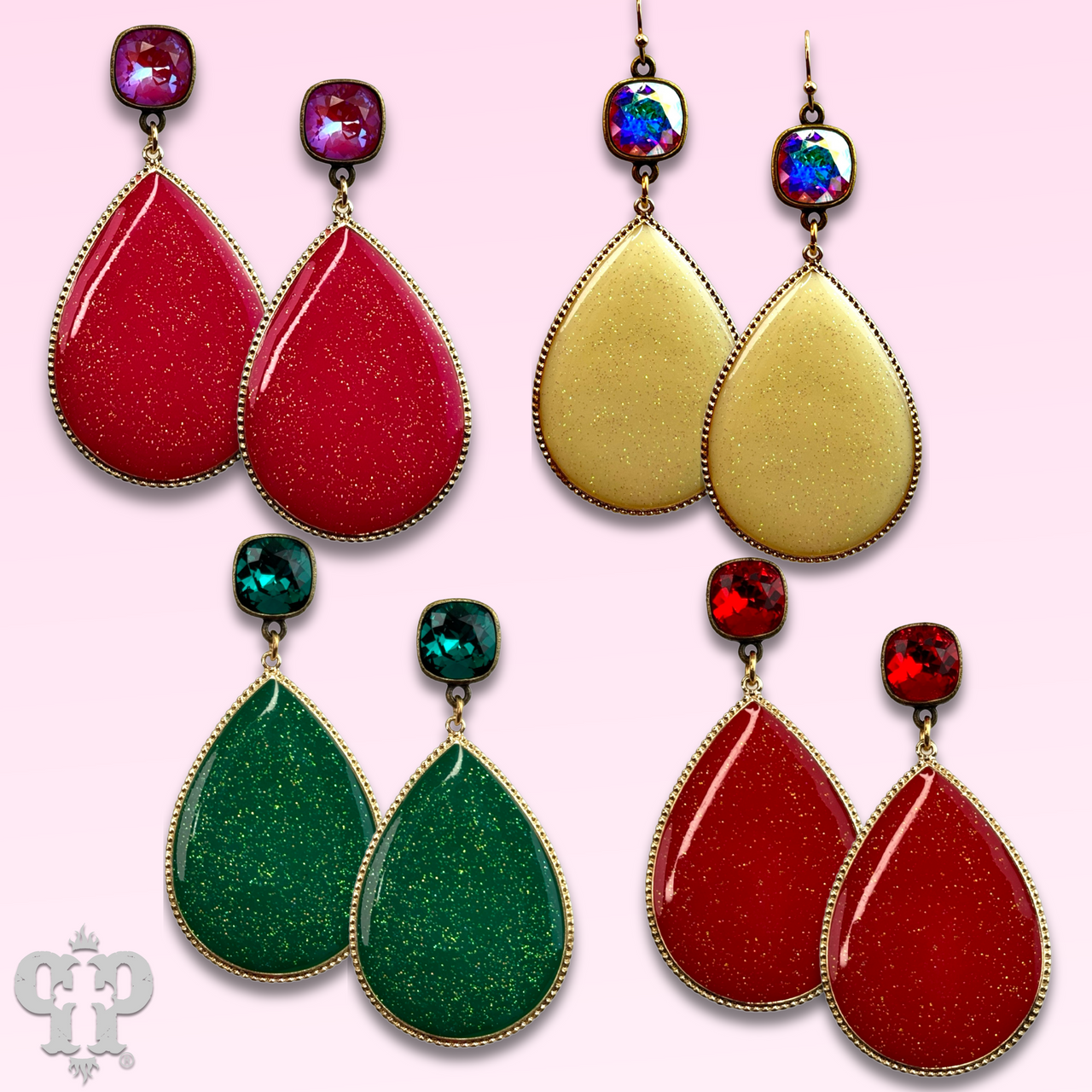 Are you ready to add some sparkle to your ensemble? This earring boasts an enamel glitter teardrop and stunning Austrian crystal.