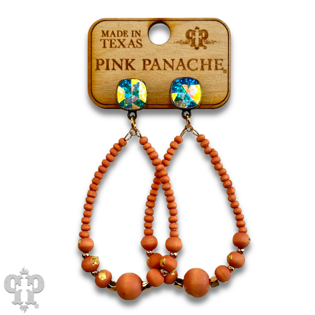 Get ready to make a statement with these teardrop earrings! Made with charming wooden beads and Austrian crystals.