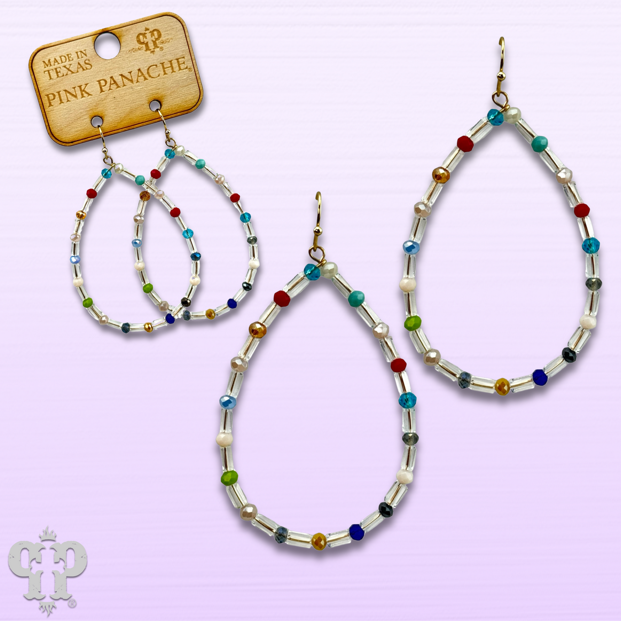 This earring has multi-color and clear glass beaded teardrop earring on french hook.  Colorful and light weight!