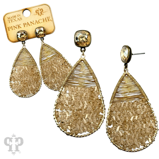 Raffia and bead wrapped teardrop earring