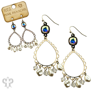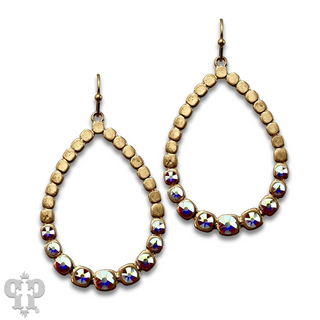 Gold print teardrop earring with Austrian crystal