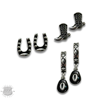 Western silver charm and post earring set