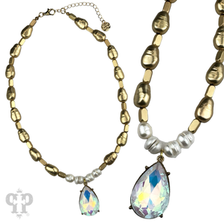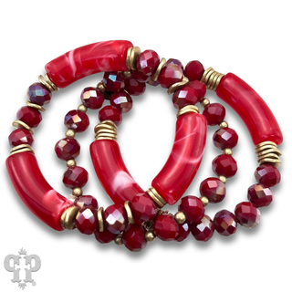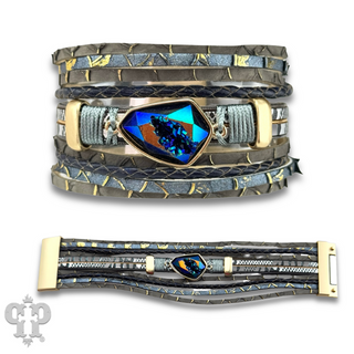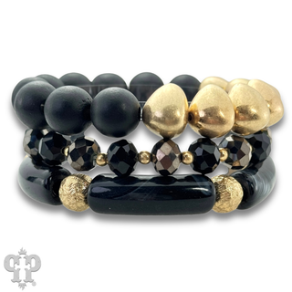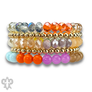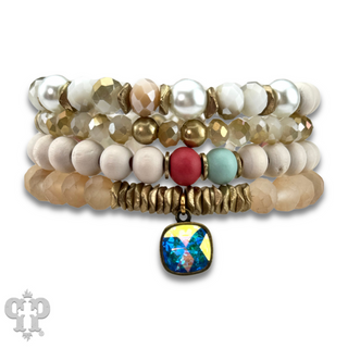 Square stone and gold bead bracelet set with Austrian crystal - LC