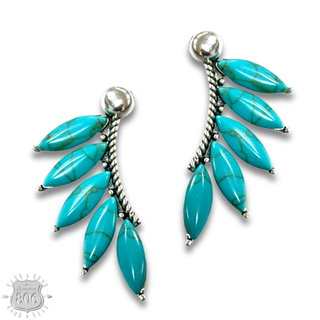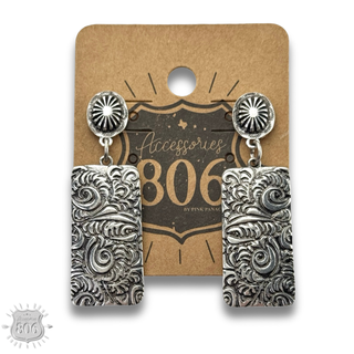 Western stone rectangle, silver post earring