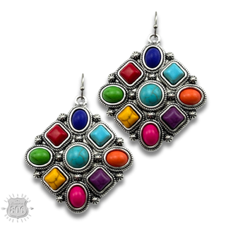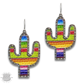 Western stone cactus earring with iridescent rhinestone