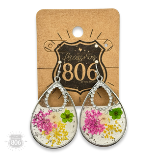 Stone teardrop in silver setting earring