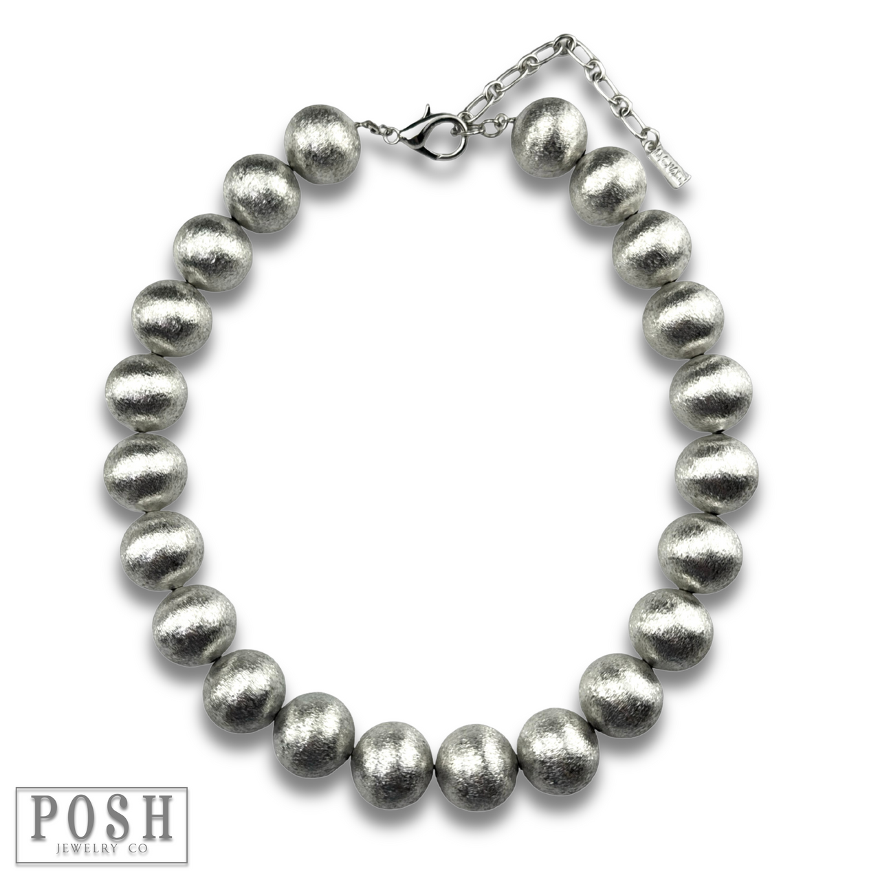 This necklace features large brushed finish beads.