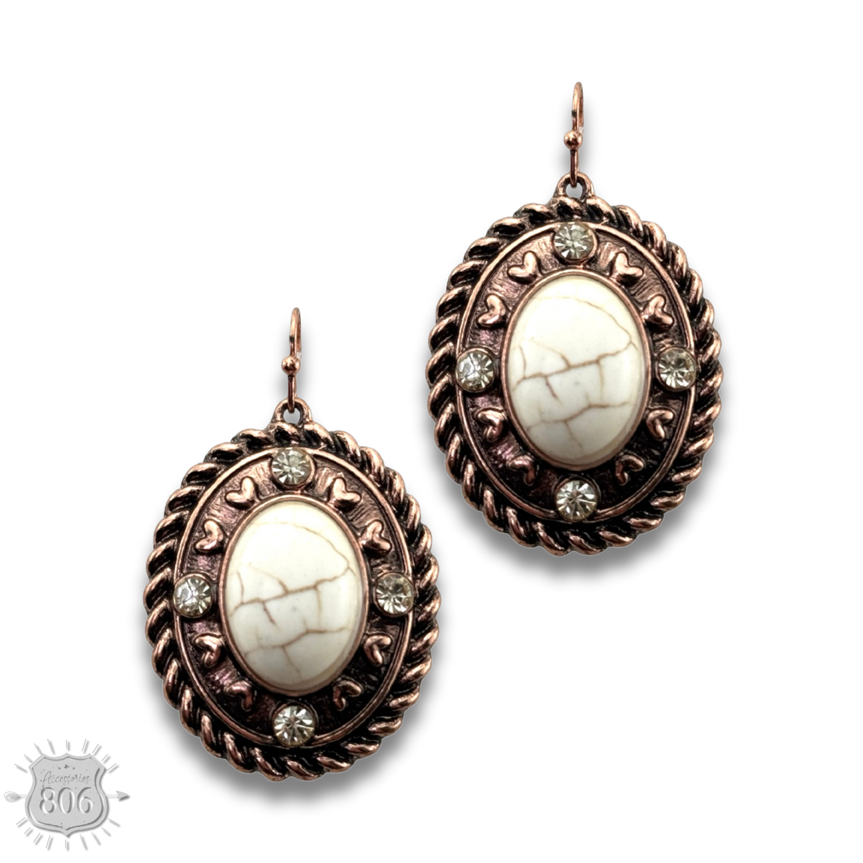 These oval shape earrings have a large center stone and some rhinestone accents.  They hang from a french hook.