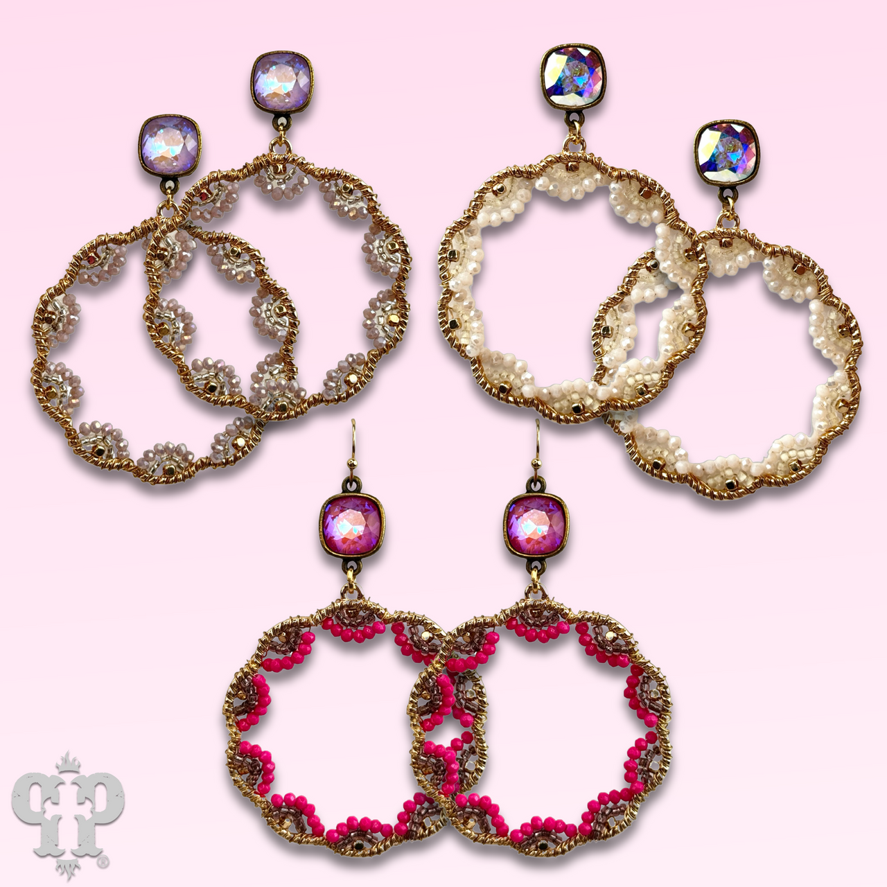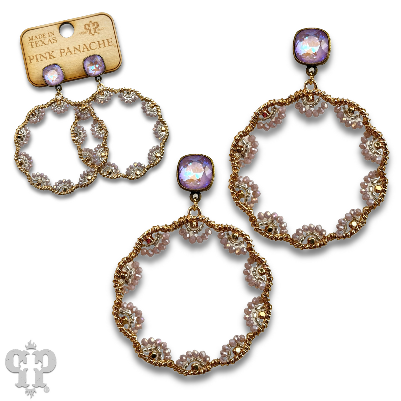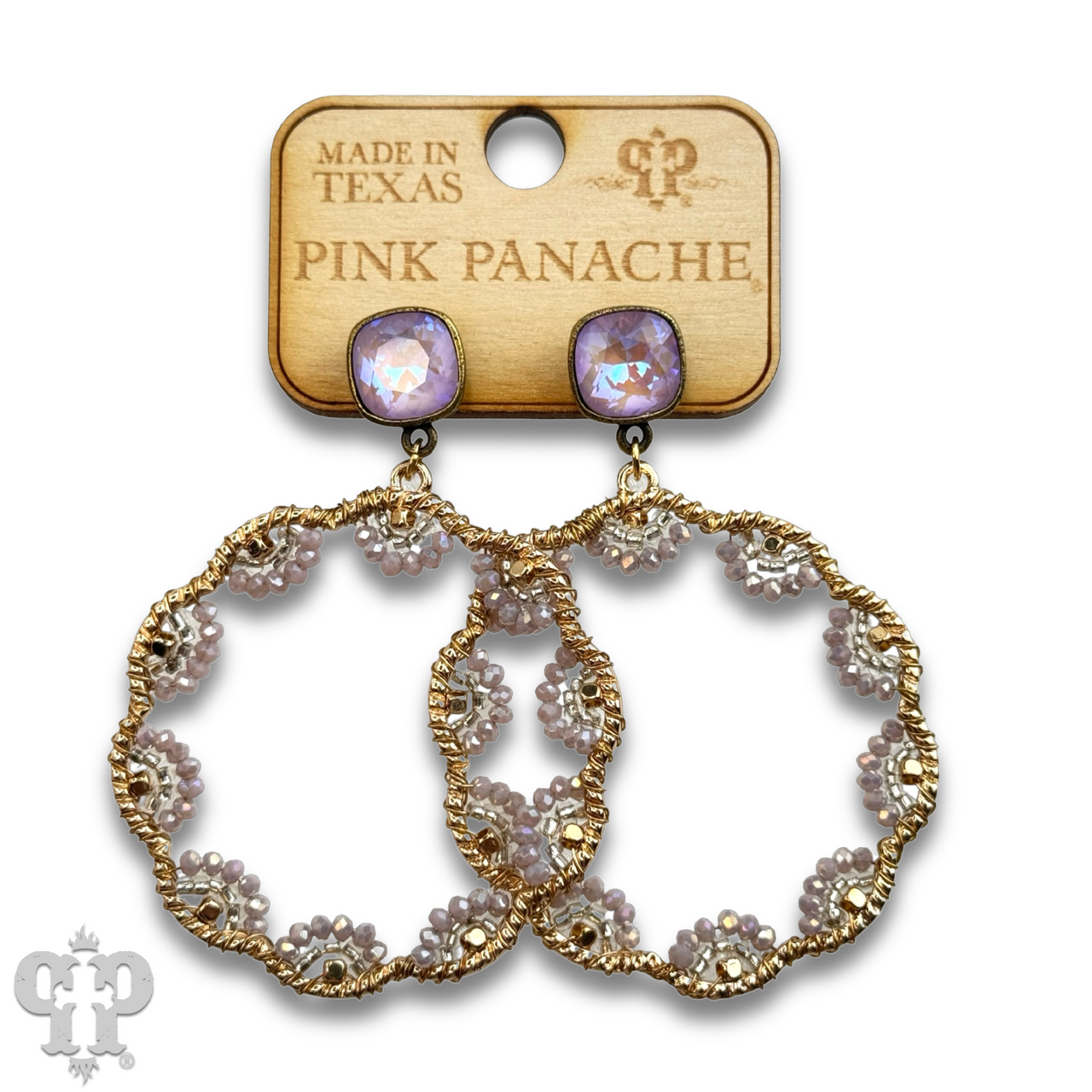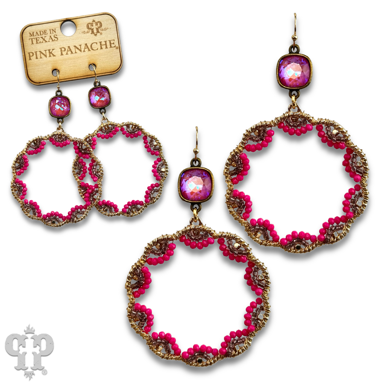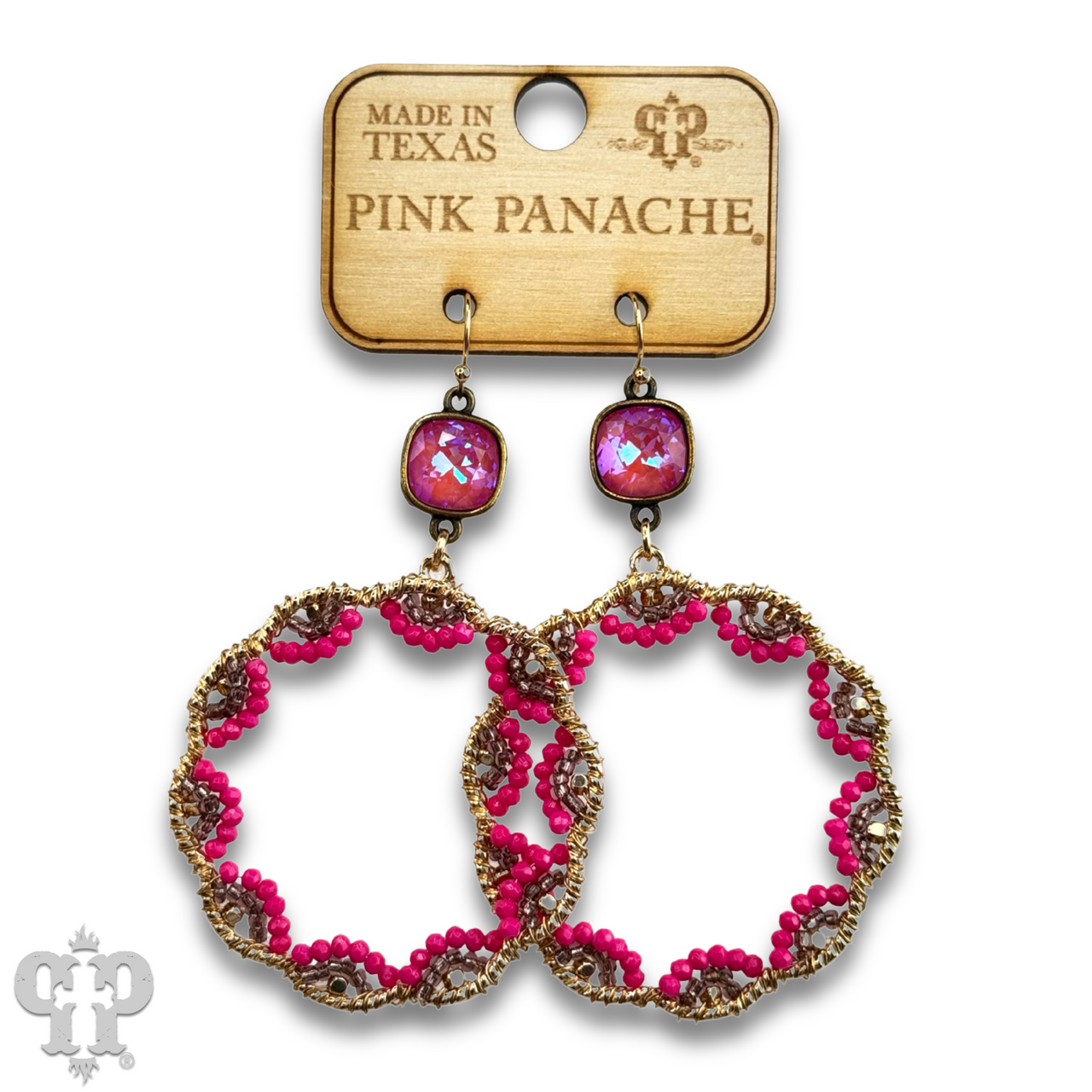 • Austrian crystal in a setting custom made for Pink Panache in the USA