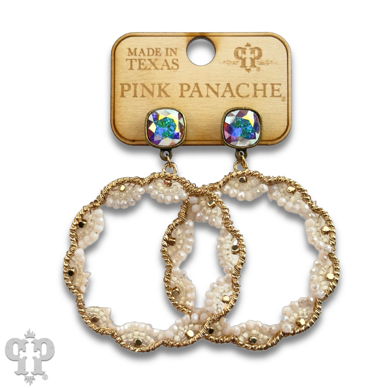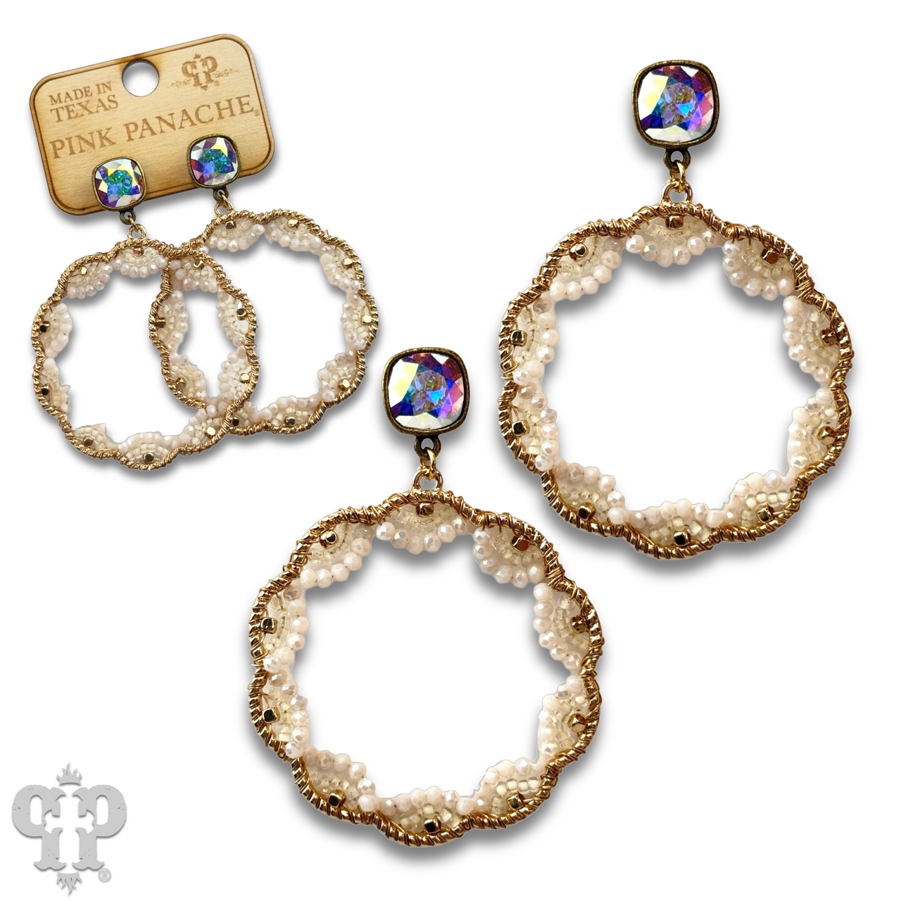 Scalloped bead circle earring with Austrian crystal